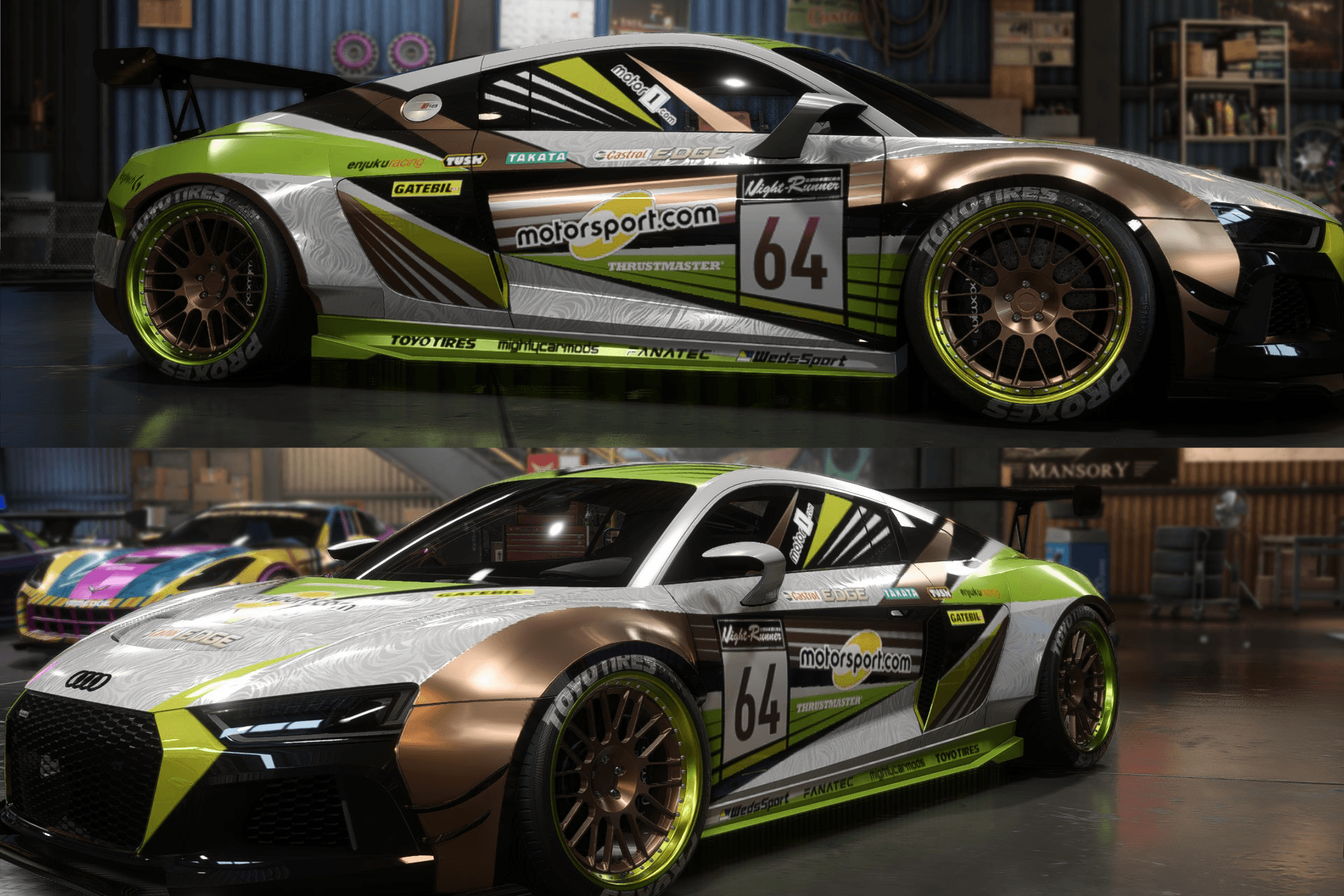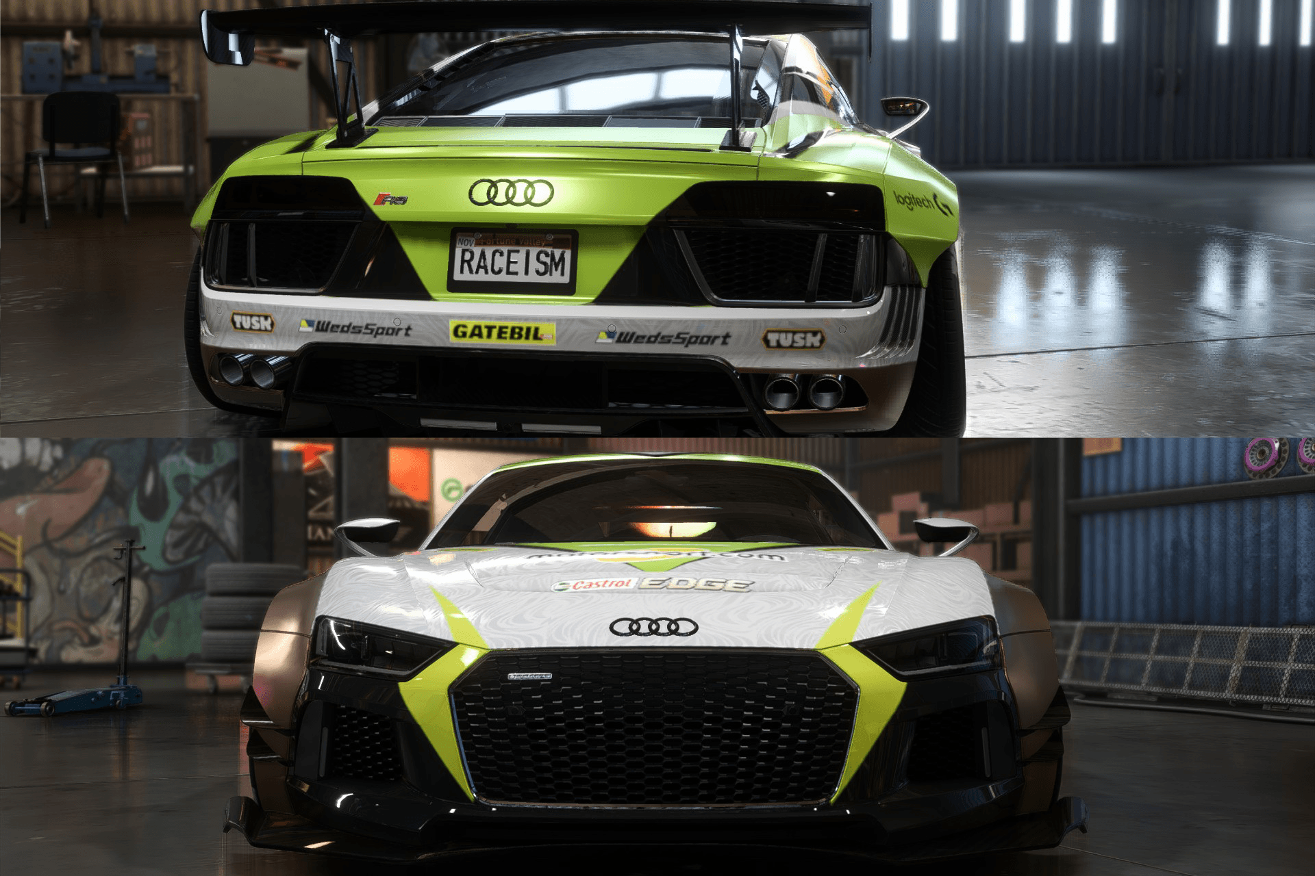 Inspiracje tutaj były dwie: jedna to R8 LMS GT2, druga to... Cayman Radzia z NFS15 (serio). To trochę bardziej pokazówka na jakieś szczególne eventy niż typowa wyścigówka, ale w sumie - chyba zrobiłem racecara (sic!).