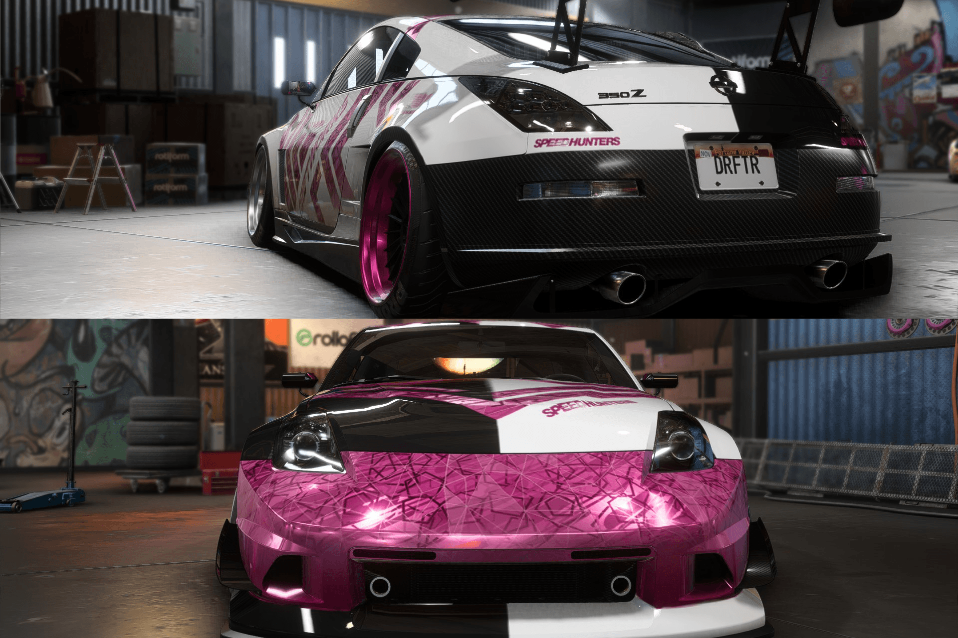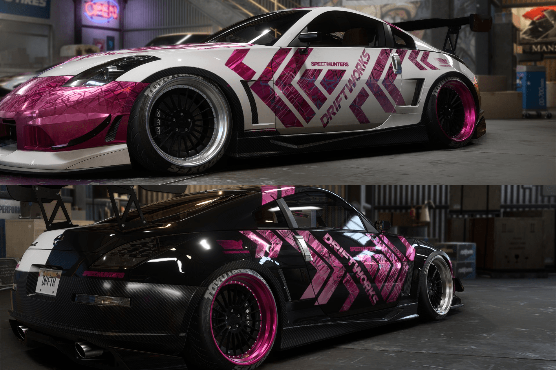 I tym razem serio przerywam tuningowanie na jakiś czas i myślę, że kolejne prace będą już robione w Heat. Chciałem tu stworzyć sobie fajny album z pracami z Payback, zrobiłem 12 aut pod rząd i... nie wybaczyłbym sobie, gdybym nie wziął "w obroty" 350Z, chyba najbardziej brakującego auta w NFS15. Myślę, że sam Radzio chciałby mieć taki projekt w swoim SR, bo w sumie to wygląda bardziej na jego niż mój projekt - nie licząc mocnej asymetrii kolorystycznej. Przyznam szczerze, że wcześniej chodził mi po głowie motyw "strzałek" z wkomponowanym driftworks na bokach, a wczoraj dołożyłem do tego totalnie dwutonowe malowanie. Jak na mnie jest to pewnie za proste, minimalistyczne, bo robiłem "lepsze" projekty. No ale właśnie - przy pewnym poziomie "projektowania" i ograniczeniach wynikających z narzędzi, można już tylko pracować coraz szybciej, co chyba pokazałem robiąc 12 aut w tak krótkim okresie (i wysypiając się, kończąc ostatnie zlecenia i mając jeszcze studia - choć te dwie ostatnie rzeczy w mniejszym nakładzie niż wcześniej, bo inaczej bym nie siadł do NFS). Tymczasem, lecę przejść od nowa Heat i trochę "wgryźć" się w ten temat, póki mam w miarę wolne - enjoy!