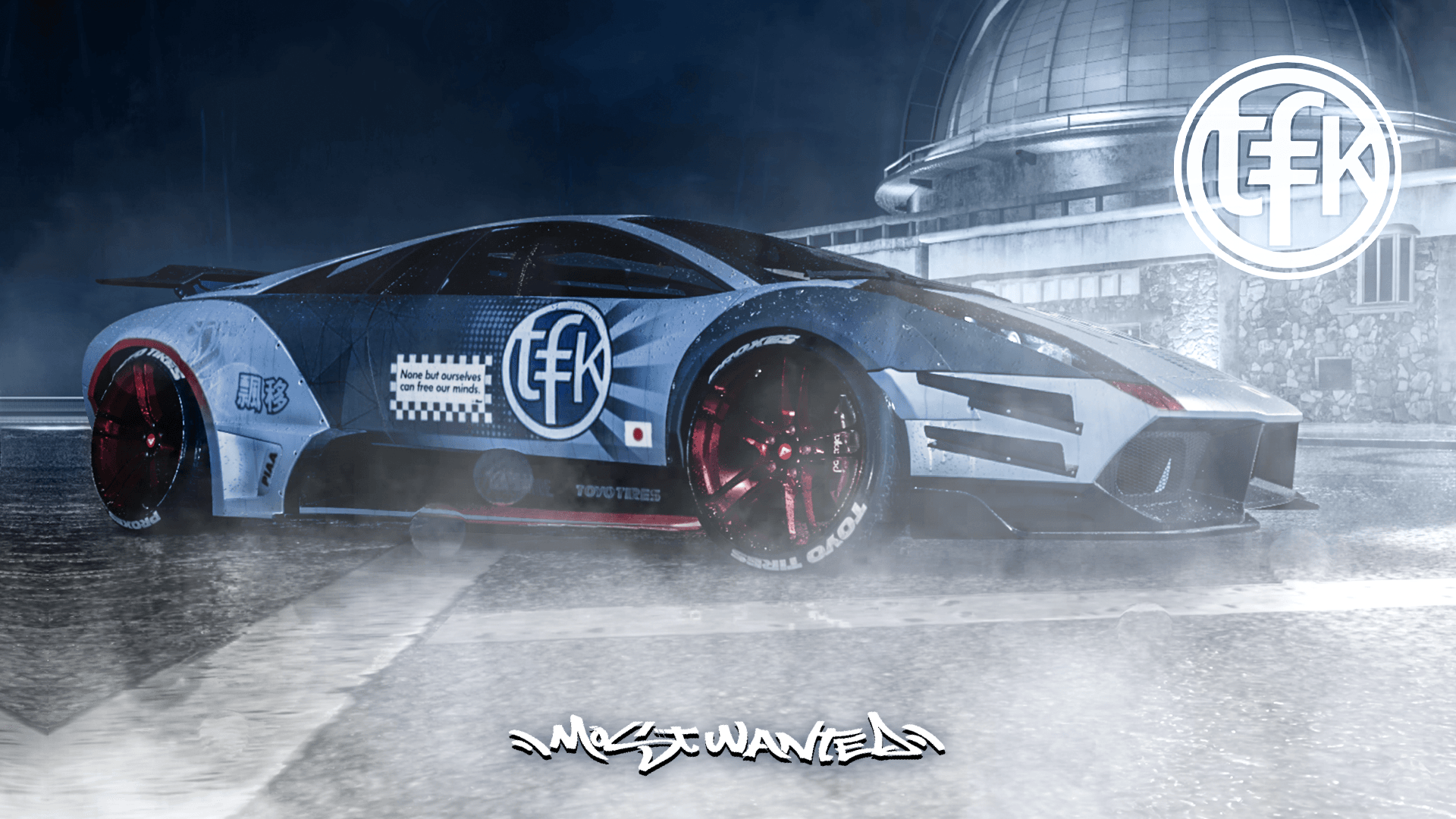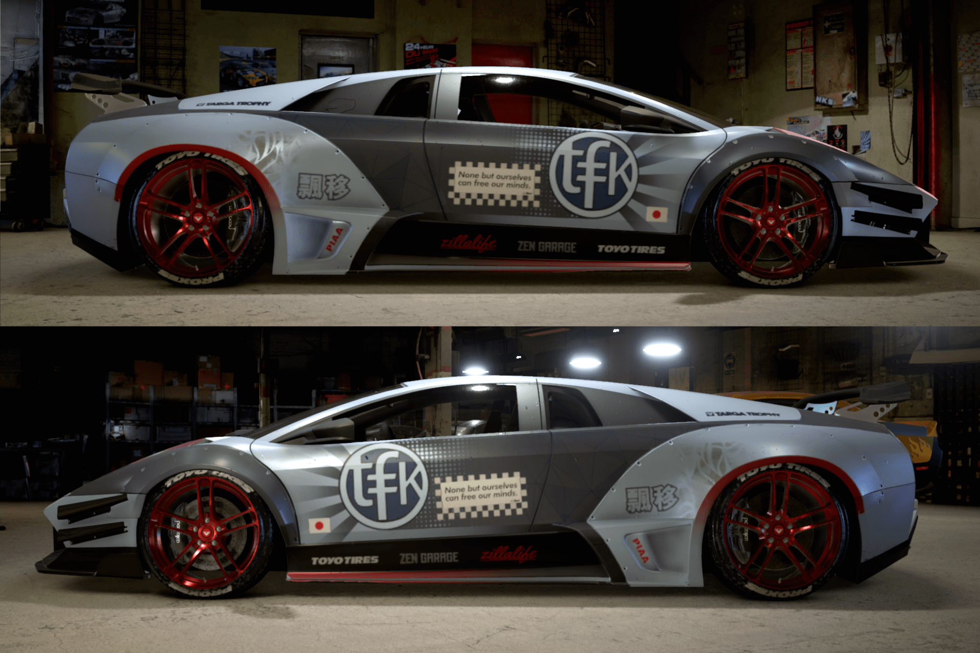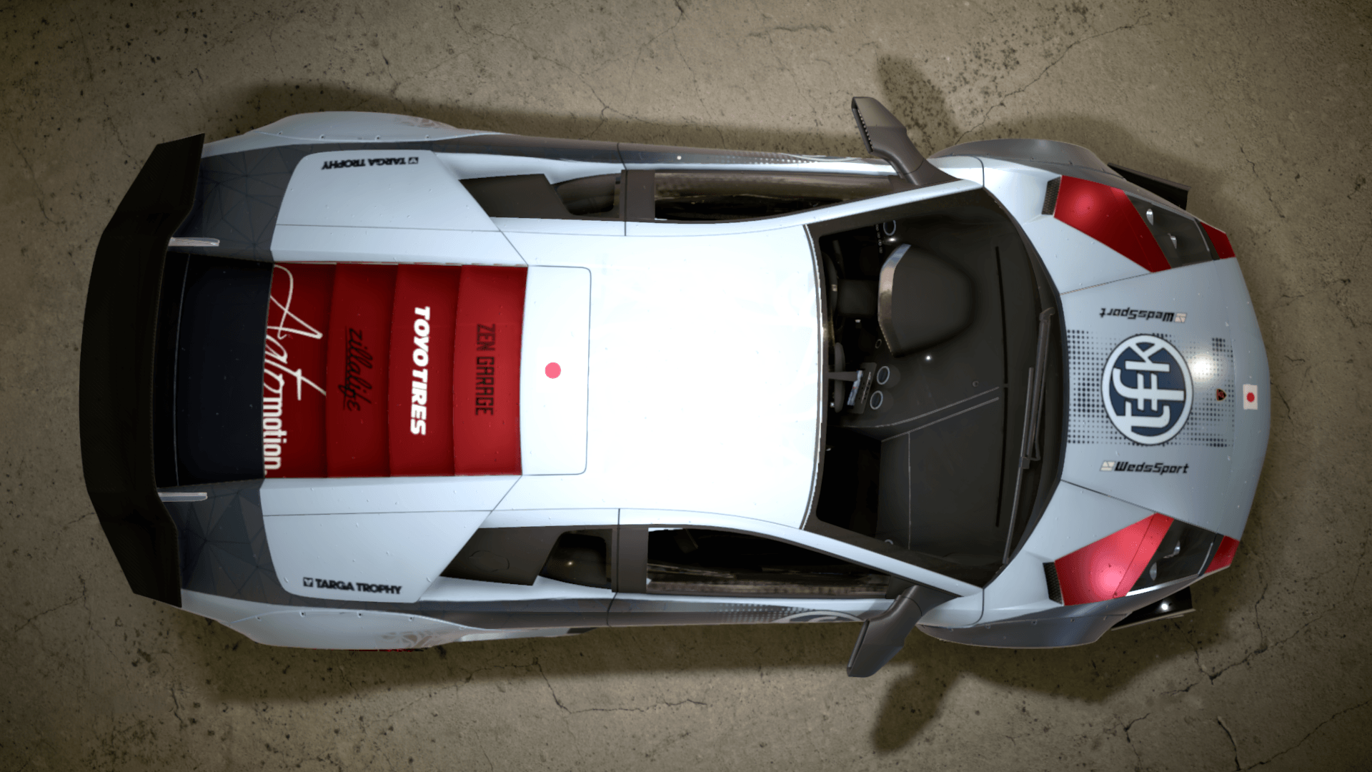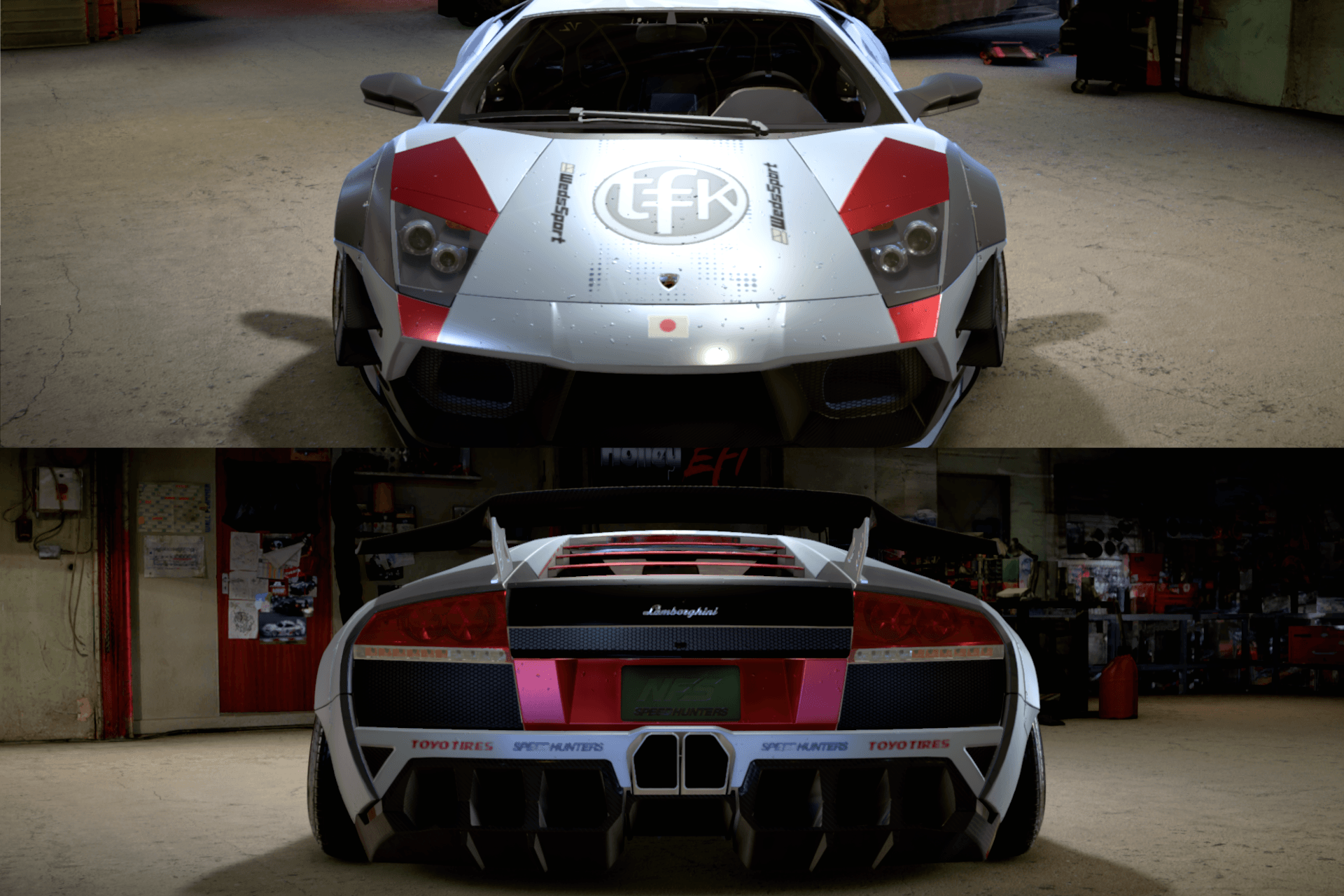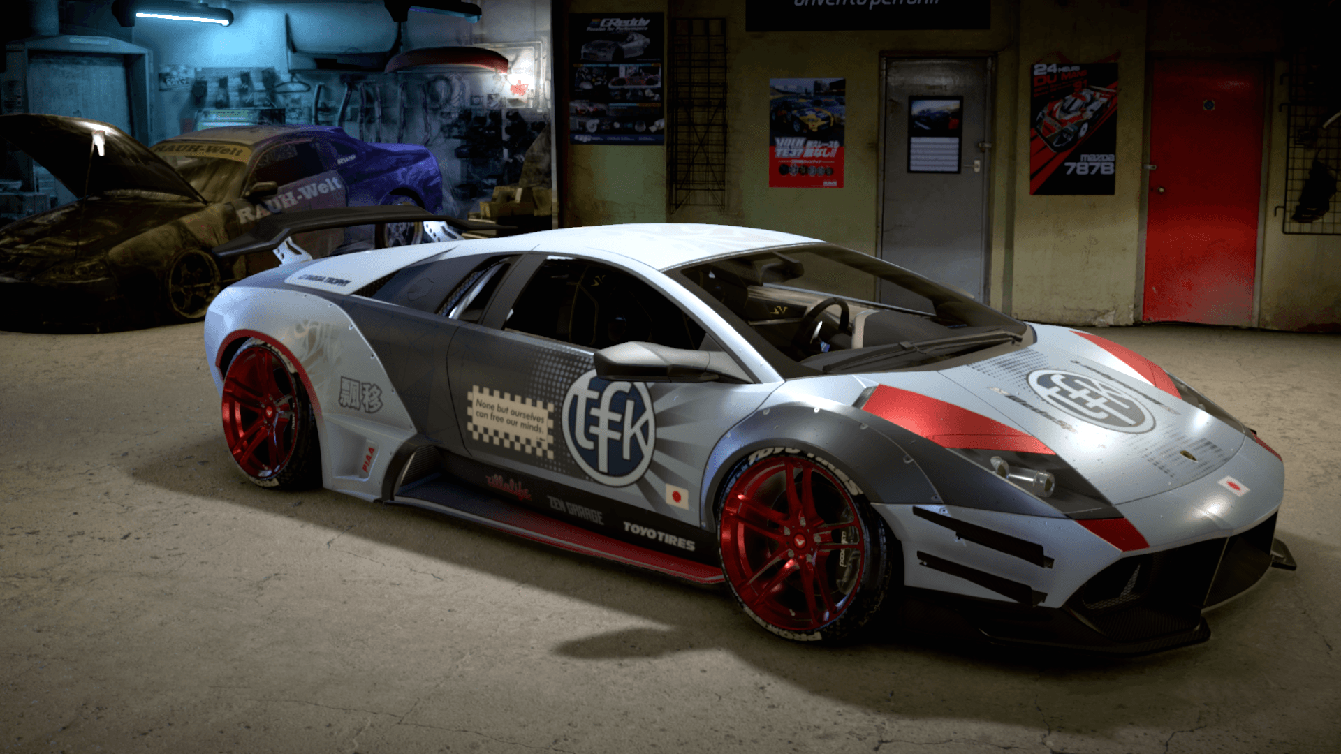 Jako, iż na aucie Minga z MW zbyt wiele się nie dzieje, i na autach TFK też zbyt wiele się nie dzieje, dorzuciłem inspirację pewnym Murcielago z body LB, które wyskoczy Wam od razu szukając Murcie LB na google grafika. Jest lekko "japońsko", dość czysto, harmonicznie, z dodatkiem kontrastującej czerwieni, tak, jak miało być.