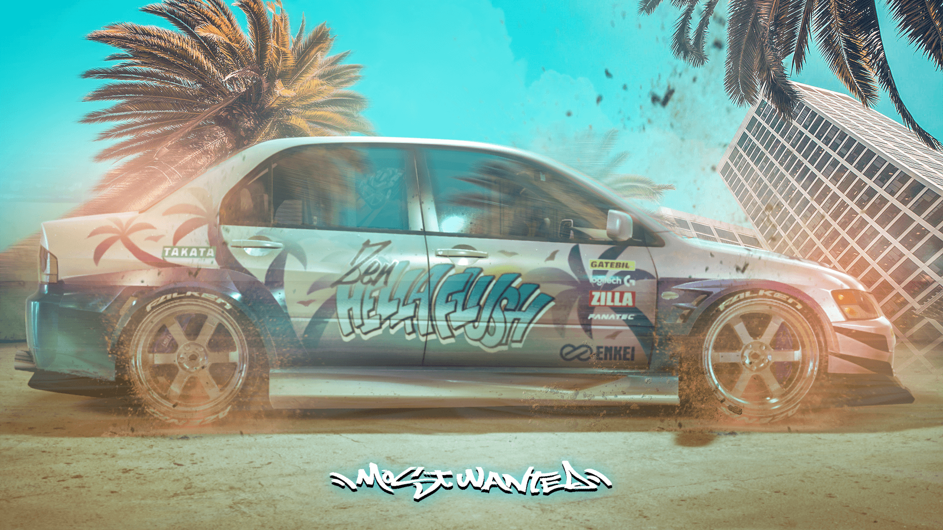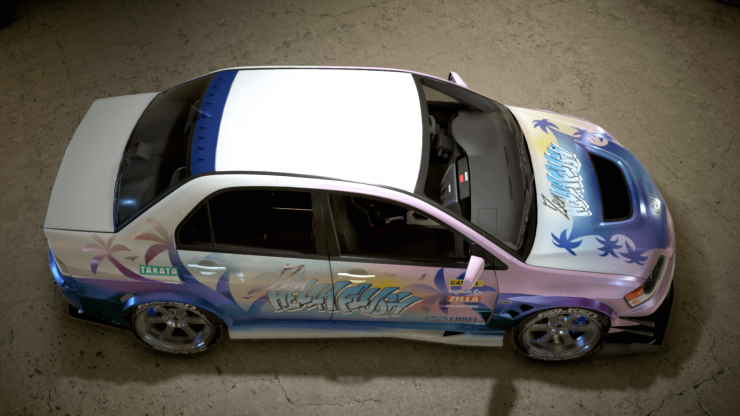 Projekt oczyszczający niczym lipton, herbata earl grey ze smakiem który lobie. Earl to chłopak z wybrzeża, więc i klimat z wybrzeża - a tak na serio, to chciałem zrobić projekt w tym stylu, z palmami, bielą i jasnym różem najpierw na Testarossie w Heat, potem na F40 w NFS15. Realizuję go w ramach tej serii, bo palmy zwyczajnie wpisywały się w zastępstwo "tribali" na nadwoziu Lancera z MW.
