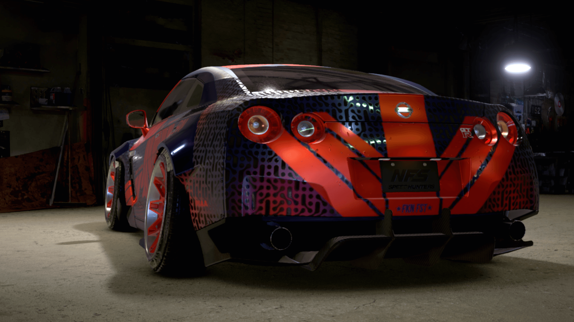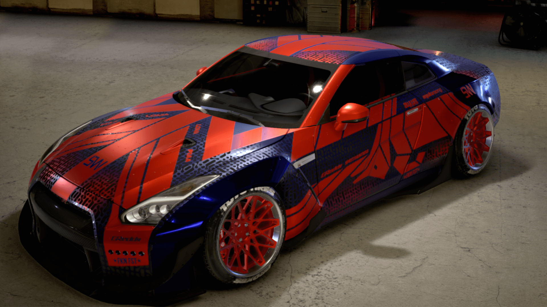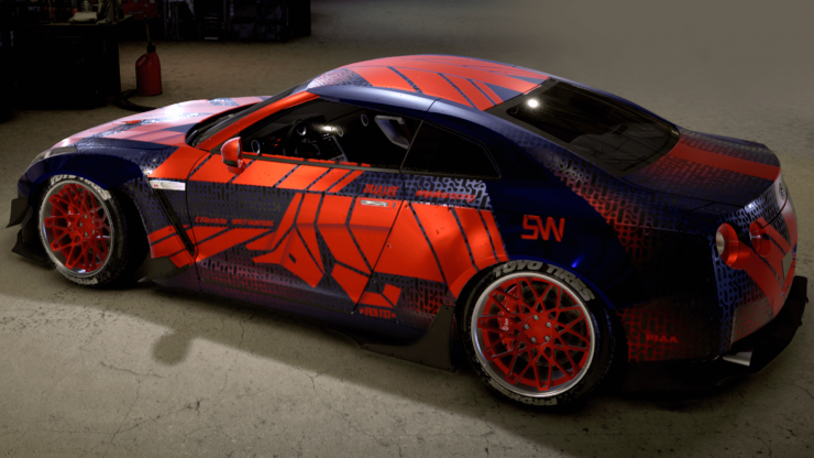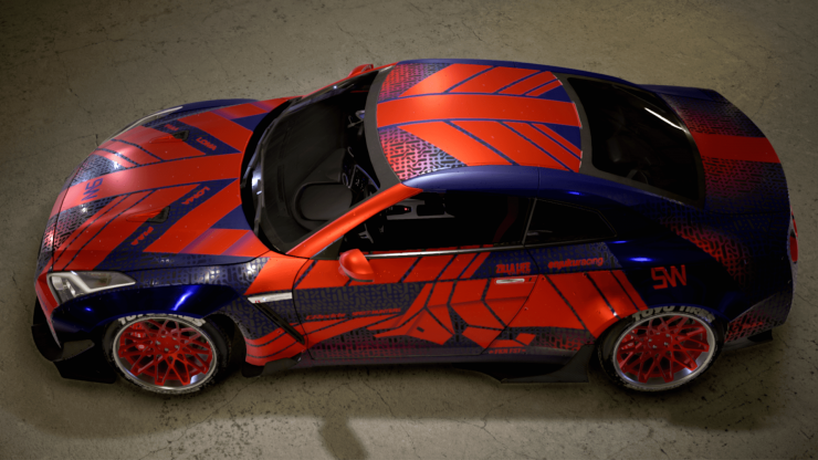 No i czas na finał serii. Jako, iż Bull poza felgami i czerwonymi szybami - miał "czyste" auto, tak tu postawiłem sobie - wreszcie! - dość czystą kartę. Wybrałem GT-R, bo mocarny i szybki, a jeszcze go nie robiłem. Moje misiaczki z motorsporn max4 - a przynajmniej dwoje z nich - uznały, że dobry, i miały w tym trochę swojego wkładu (podziękowania za dobór felg i ich koloru dla Allure i Morvic) - ale czułem, że muszę zakończyć to czymś, co przynajmniej potęga motorsporn max4 uzna za dobre. Punktem zaczepnym było dla mnie malowanie Red Bulla (hehe, bo wiecie, Bull i Red Bull) z Astona Martina Valkyrie, tutaj dopasowane pod kształt nadwozia GT-R.