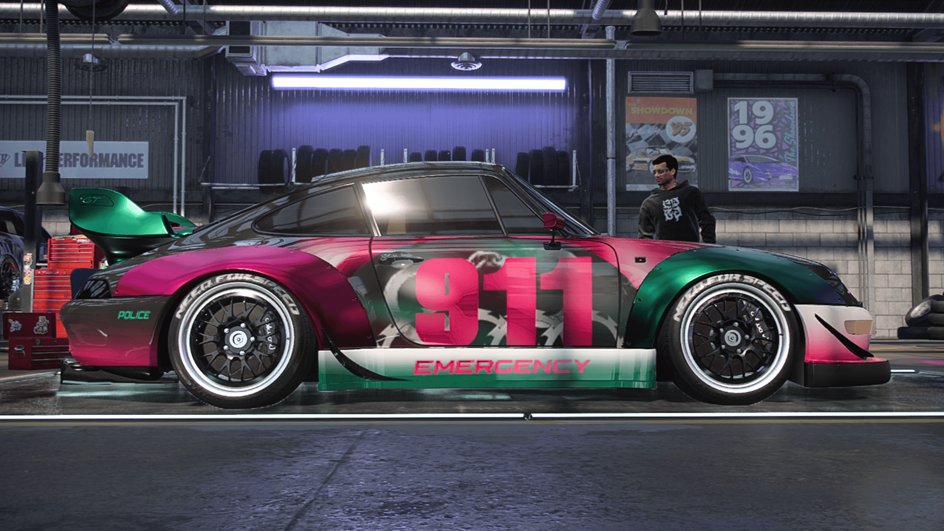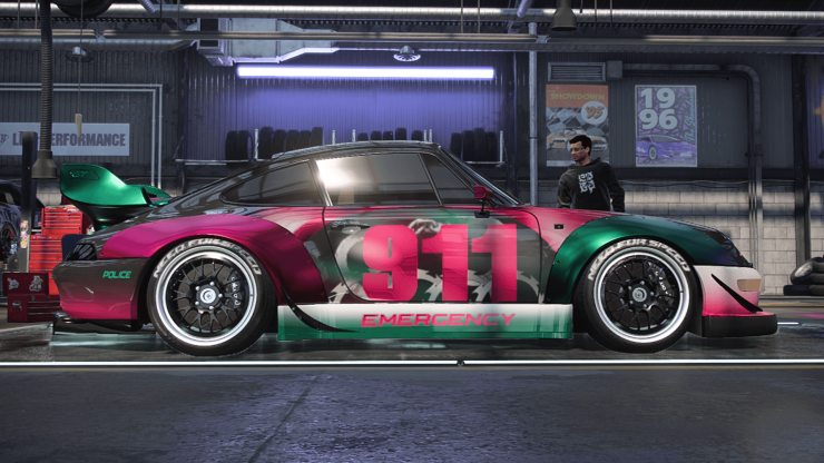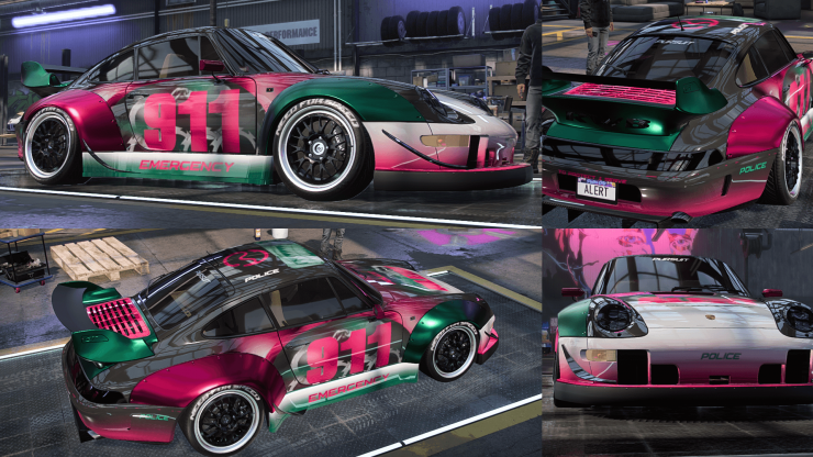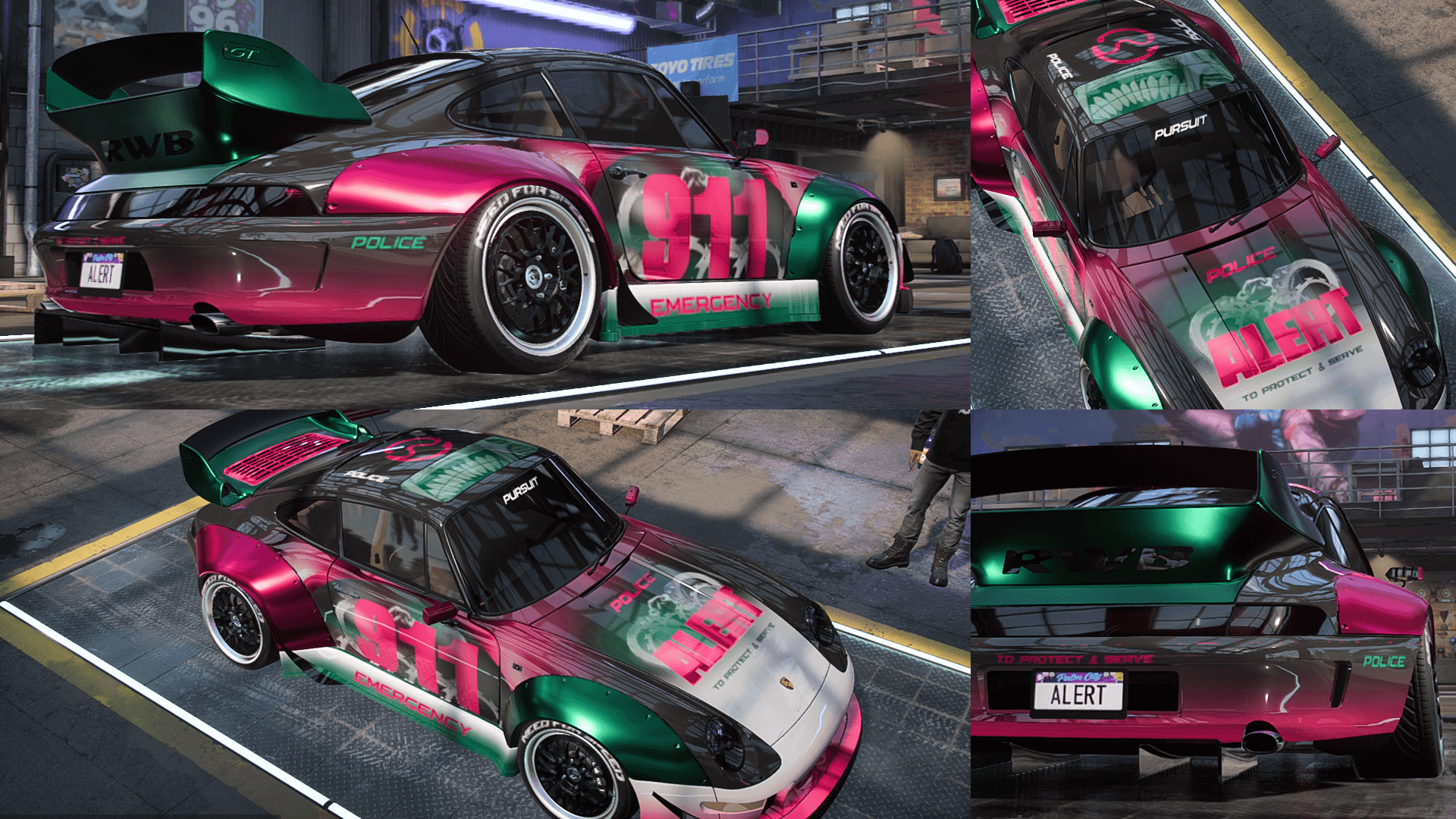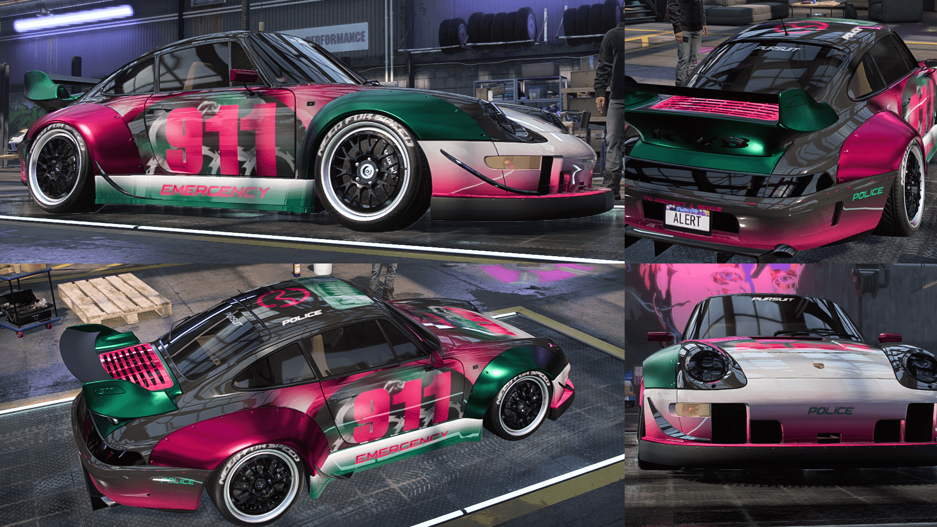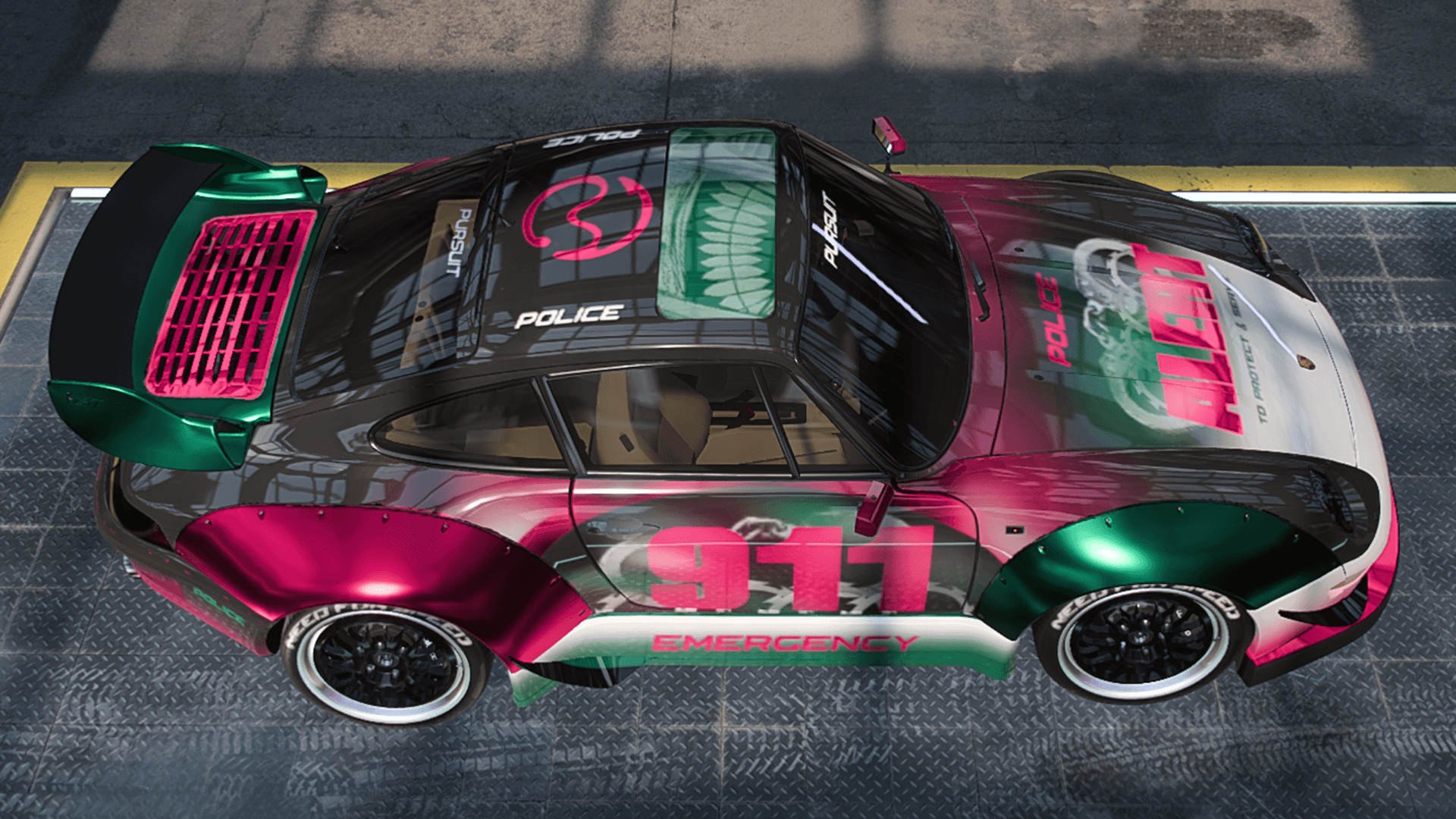 To auto musiało powstać - miałem realizować je już w NFS15, ale, gdy na "pornlice" Radka zauważyłem gotowe naklejki policyjne w edytorze Heat, uznałem, że trzeba zrealizować to w Heat właśnie. To jest Chromatica, czyli pewna tandeta z dominacją różu i zieleni, z charakterystycznym symbolem sinusa, tj. fali dźwiękowej, i z krojonymi "od 0" napisami "911" i "ALERT", pojawiającymi się na zapętlonym video, słuchając "911" na Spotify.