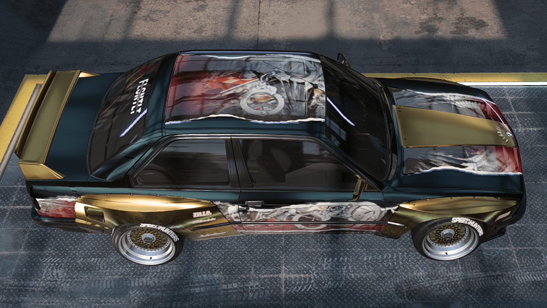 Najwyższych lotów nie jest niestety. Na obróbce wyglądał obiecująco i jak wysłałeś na mess to byłem w stanie dać temu nawet 9. Ale screeny z garażu ujawniają chaos w motywie na drzwiach i ten nieszczęsny bagażnik pomalowany na złoto.