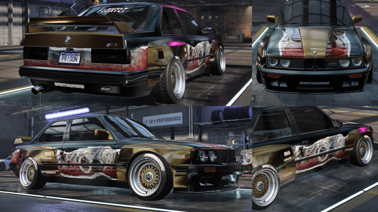 Jako, iż jako starter car nie mogłem go usunąć, musiałem znaleźć pomysł na E30. Przyszedł on bardzo szybko, jako, iż 2020 minął mi - poza absolutną dominacją Chromatiki i sporym wkładem Future Nostalgii - na słuchaniu Plastic Hearts od Miley Cyrus, skąd pochodzi właśnie "Prisoner". To jest pop-rock, z klimatami retro, mocnym złotem i "szarpanymi" wstawkami.