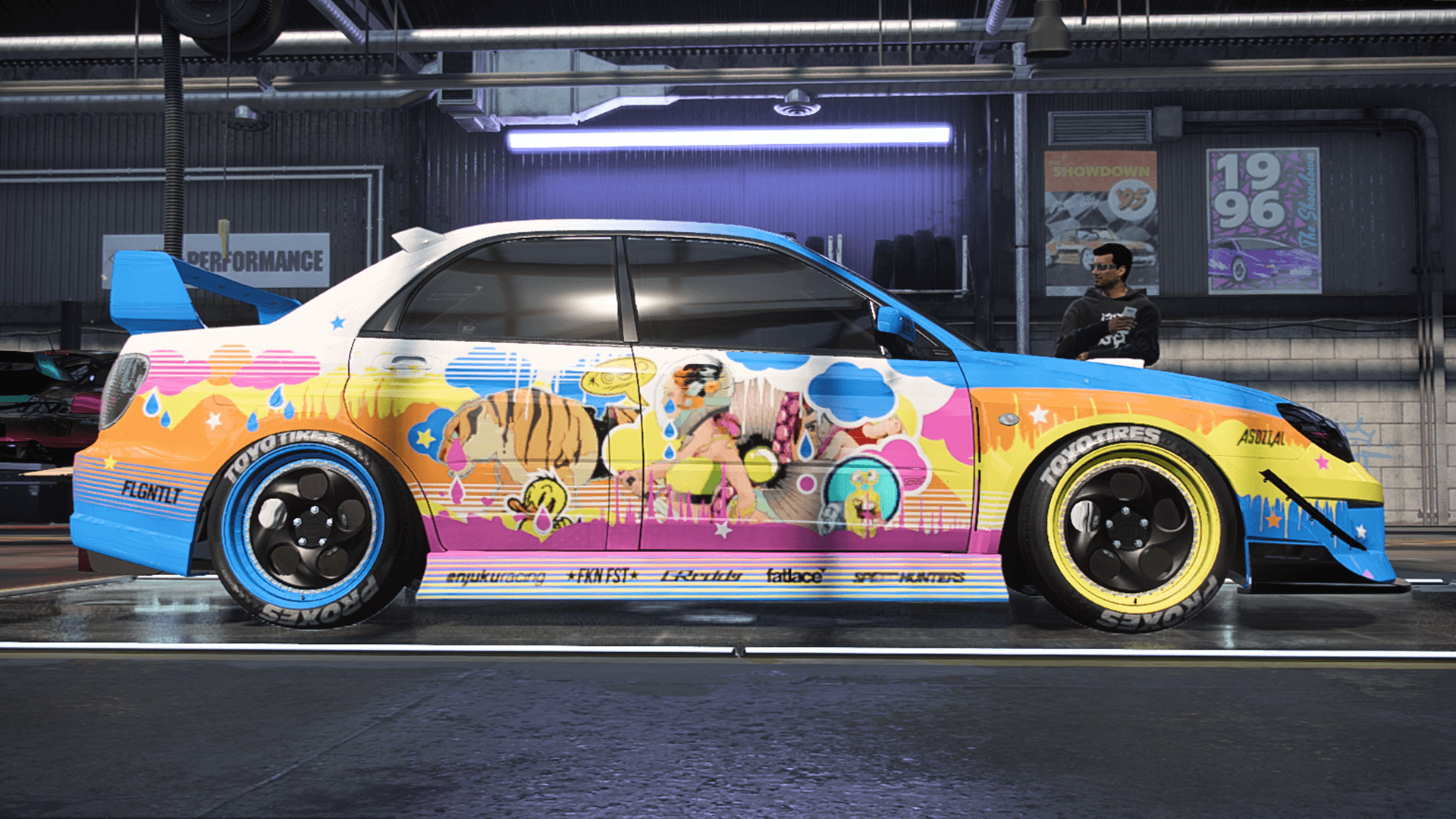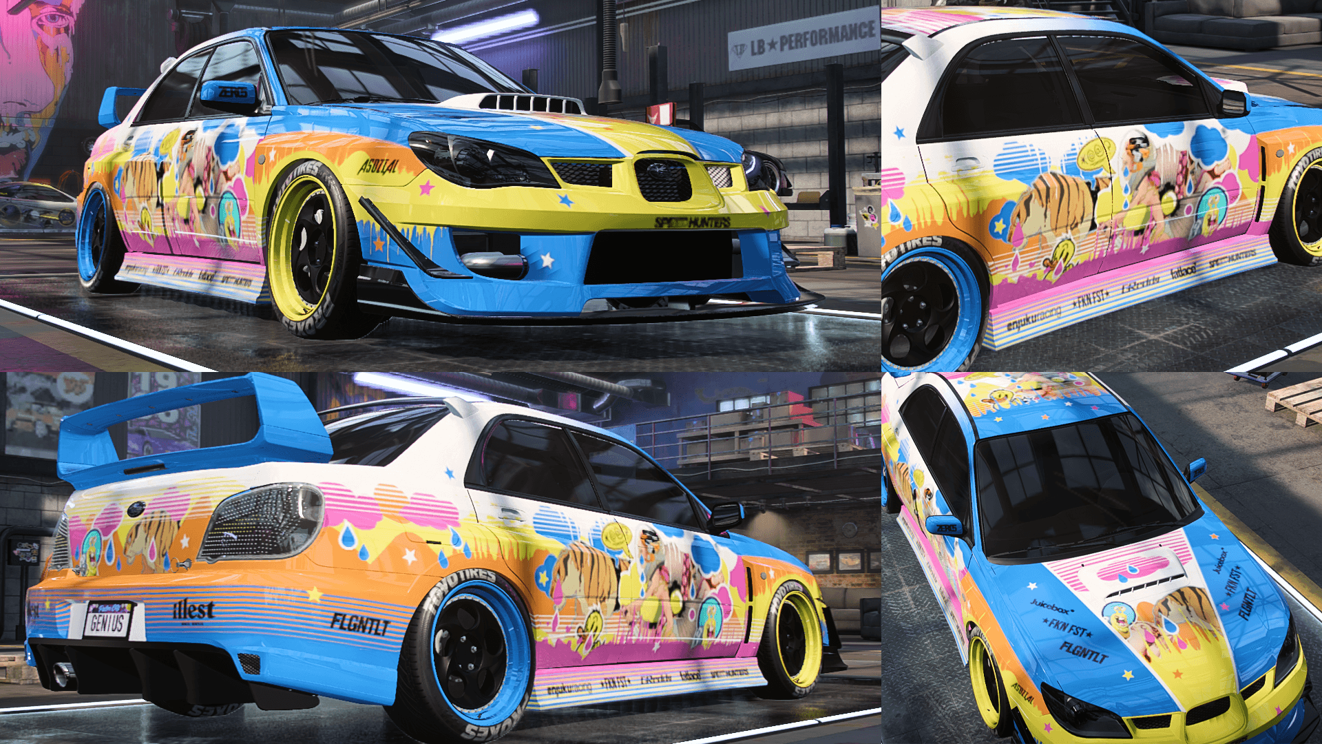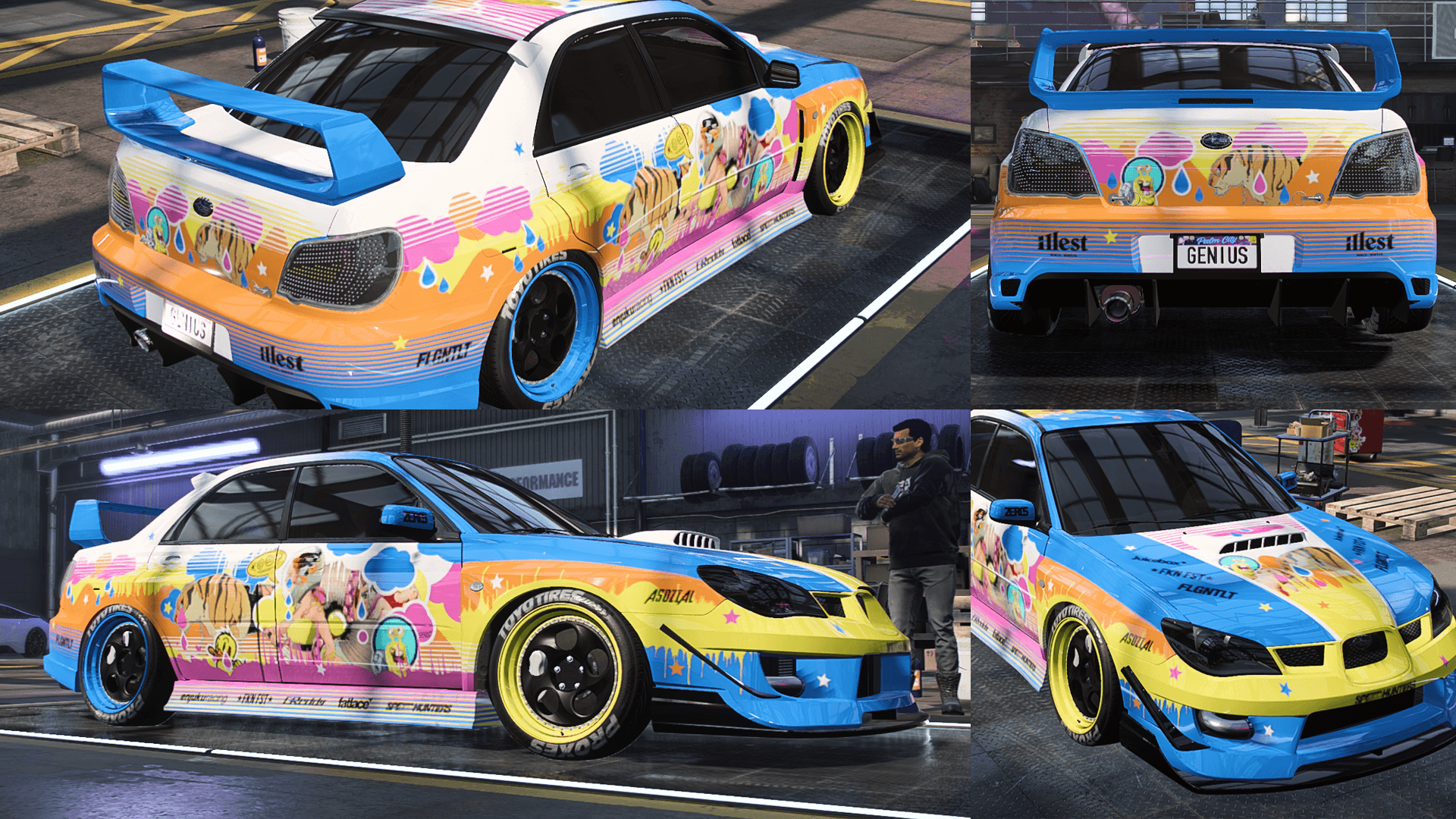 "Odstający" od reszty, ale jakże potrzebny. Początkowo myślałem, by podobny motyw zrealizować na 370Z, ale - licząc "tygryska" na vinylu - mógłbym zostać posądzony o zrzynanie z Tiger Lady. Poza tym, planując "album", stuningowanie tej Imprezy było konieczne.