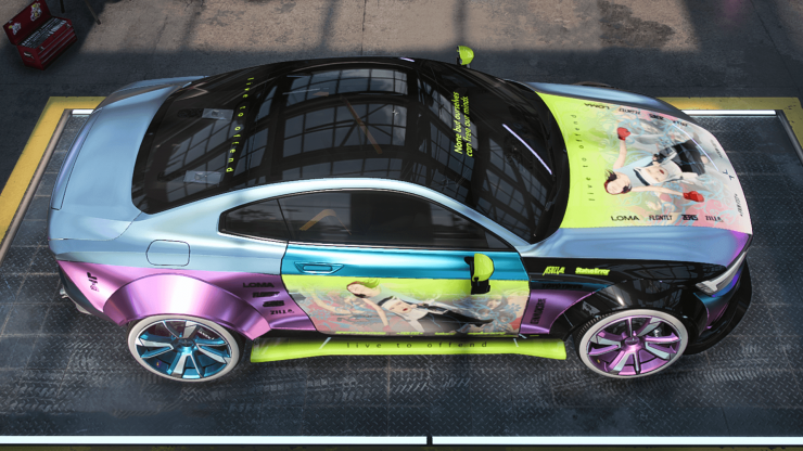To jedno z tych aut - obok 488 GTB i 911 Targa - którymi sporo jeździłem w Heat, więc też nie ma się co dziwić, że "kontynuuje" przygodę rozpoczętą 911. Może i wtórne, ja w tym widzę auto, którym chętnie pojawiłbym się na jakimś fashion weeku, bo - na przekór tej kolorystyce - uważam je za dostatecznie eleganckie. No i kilka cytatów na nadwoziu, nawiązujących do artpopu, tj. tutaj carpopu.
