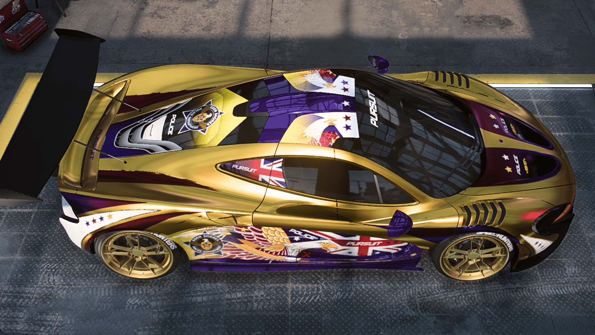 Nie będę ukrywać - zobaczyłem Vette Radka i uznałem, że dobrze byłoby rozwinąć "orzełka" w inną koncepcję na innym aucie. P1 ma dobre kształty, a - z racji niedawnej premiery HP Remastered i hype kreowanym na fanpage NFSPolska, uznałem, że fajnie byłoby do tego nawiązać. Jest więc superauto, w dość nietuzinkowym - jak na policję - malowaniu, ale na pewno skuteczne w łapaniu przestępców.