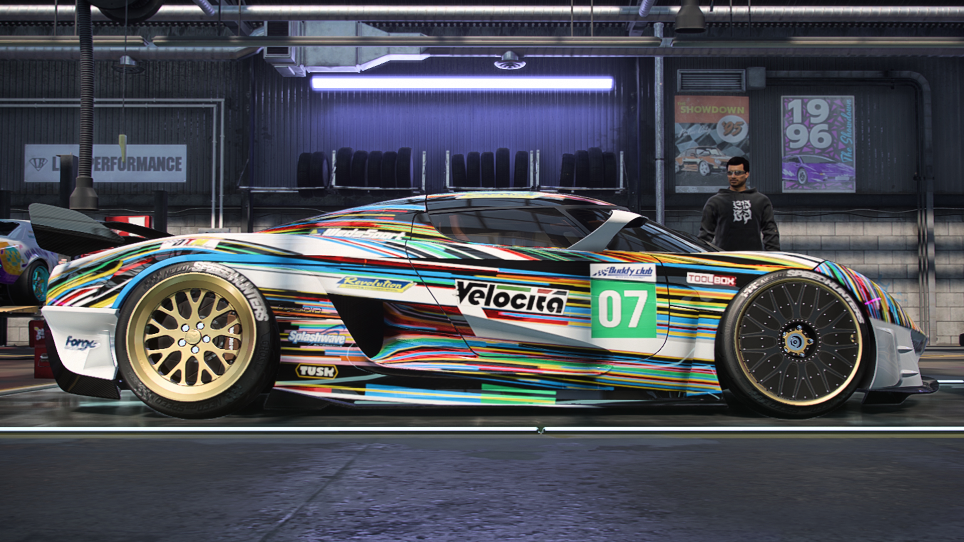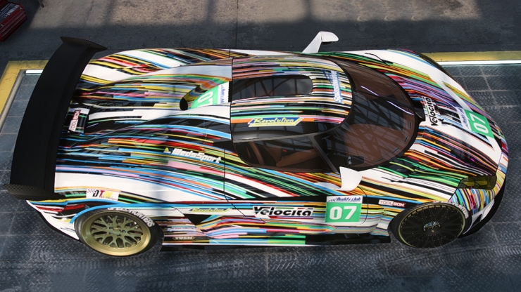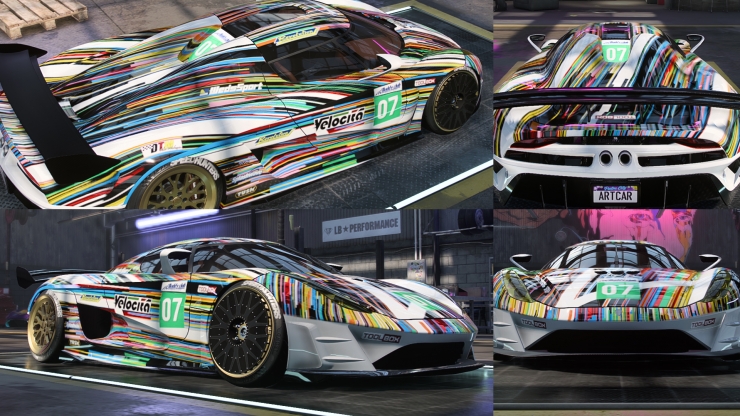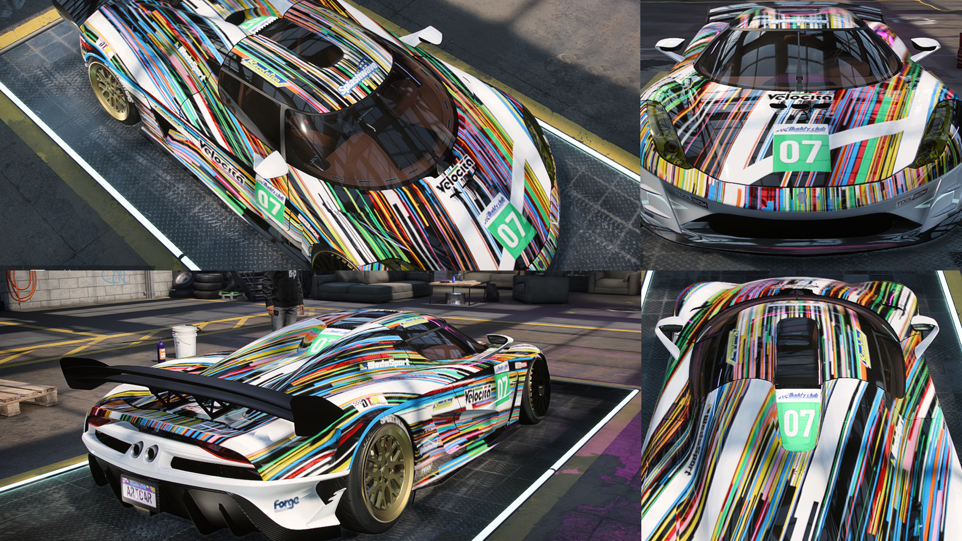 Na "koniec" serii szczególny dla mnie projekt, bo pomysł na art-carową Regerę był już w Payback, i miała ona być moim siódmym projektem z Pb, realizowanym zaraz po niebiesko-różowym E92. Pasy to tutaj zarazem szum, jak i pewna dynamika i prędkość, w zakrzywionej formie wprowadzając dodatkowo pewien chaos - sporą część tych krzywizn tworzą jednak kształty Regery, a nie zmiana kierunku pasów. Inspiracja to M3 GT2 autorstwa Jeffa Koonsa, ale w bardziej "upstrzonej" i jednocześnie regularnej formie.