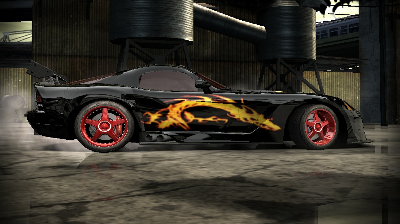 Czarne auta z płomieniami to raczej bardzo mocno przedawniony pomysł, nie wracałbym do tego, a już na pewno nie w mw.