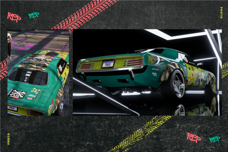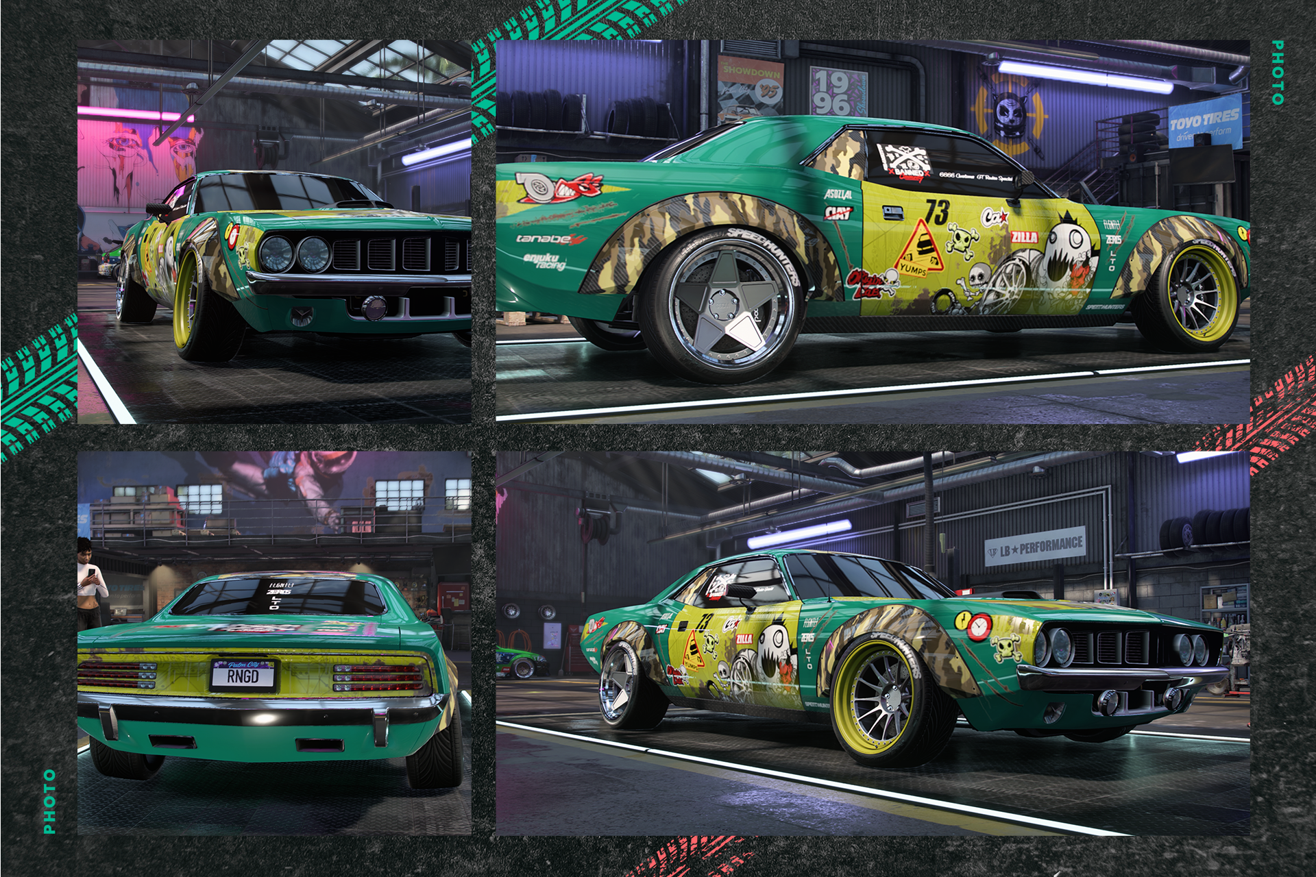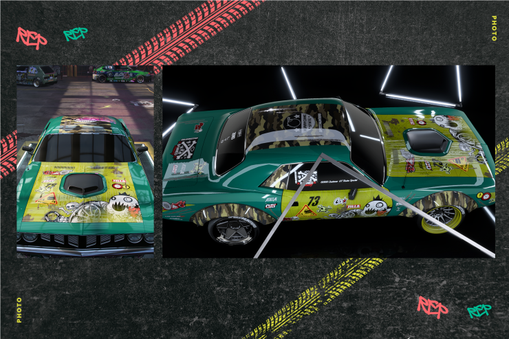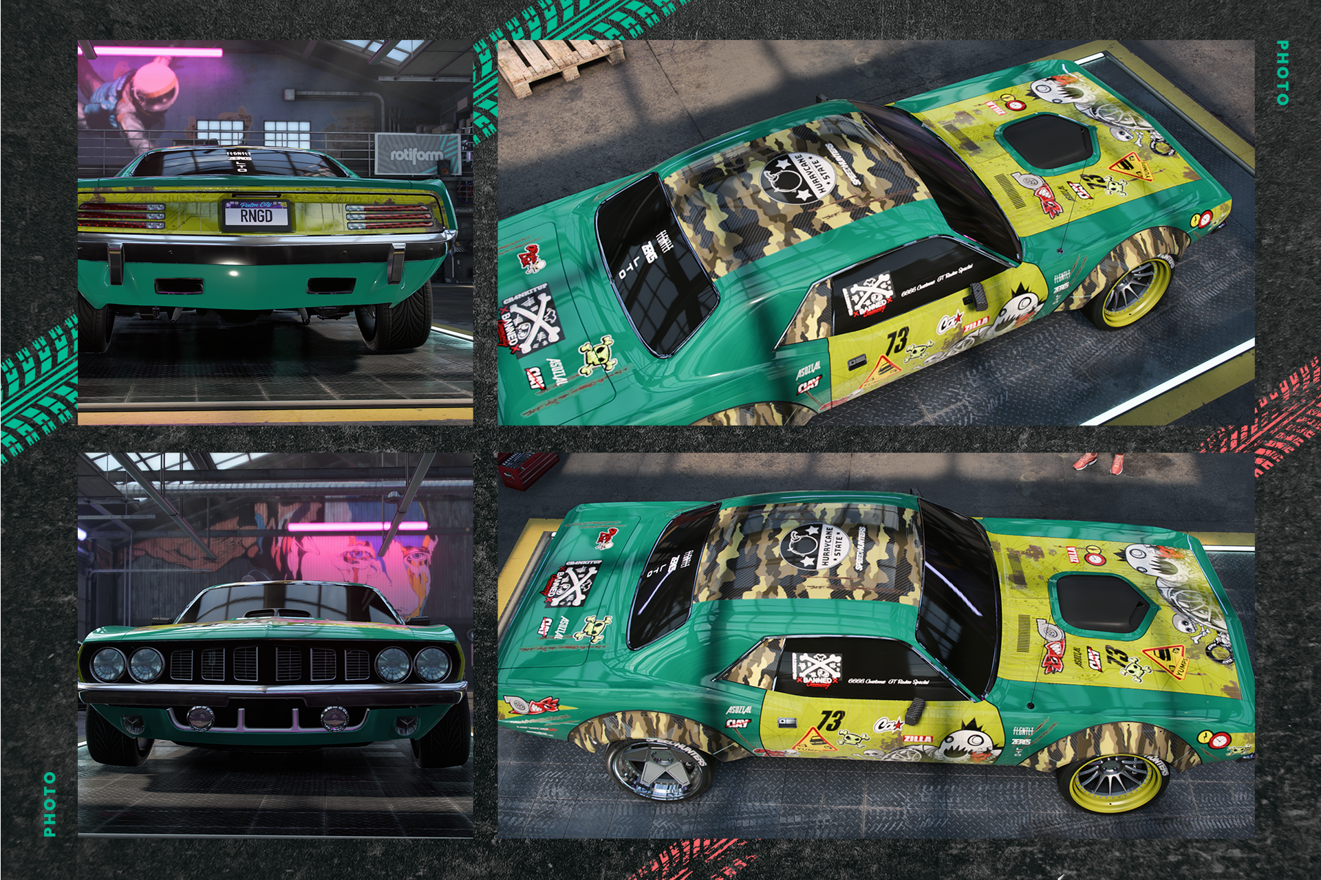 Fajne nawiązanie do Pro Street, ale nie czuję tego. Trochę jak zabawka Hot Wheels, trochę jakby dziecko ponaklejało przypadkowe naklejki wszędzie. Kamuflaż przy tej kolorystyce też jakoś nie pasuje. Przednia felga fajna, z tyłu nie bardzo. Max6 dla mnie.