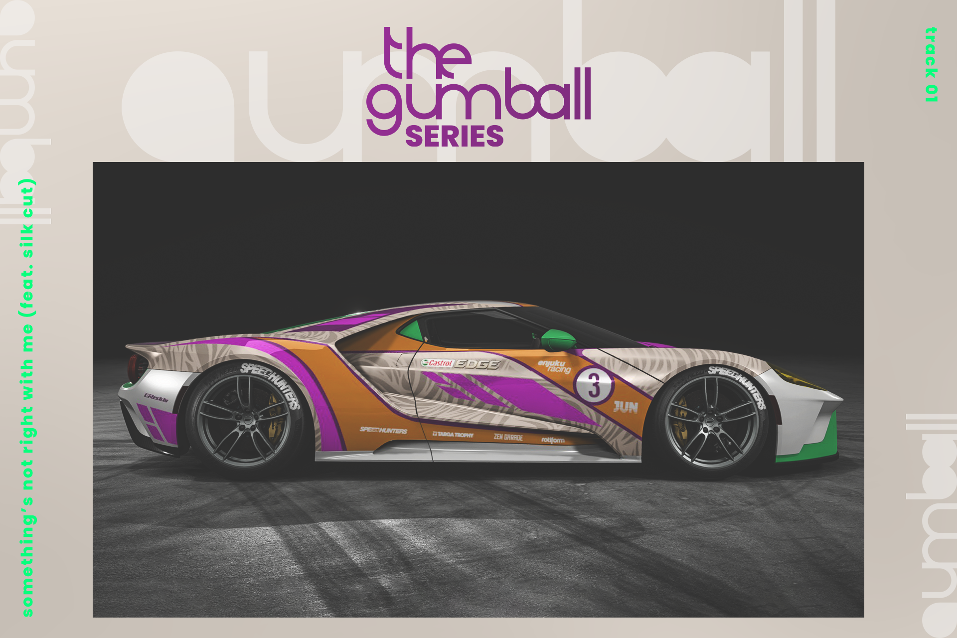 The gumball series to inspiracje racecarami, ale nie racecary - to głównie klimat stockowych aut z oklejeniami nawiązującymi do racecarów. Głównym celem było dla mnie stworzenie malowań i aut, którymi sam chciałbym jeździć na żywo, czy to jako daily, czy na różne "okazje". Gumball to też wiele stockowych części i bardzo delikatny tuning pod tym kątem. Hasło tej serii to dla mnie "jeździłbym".