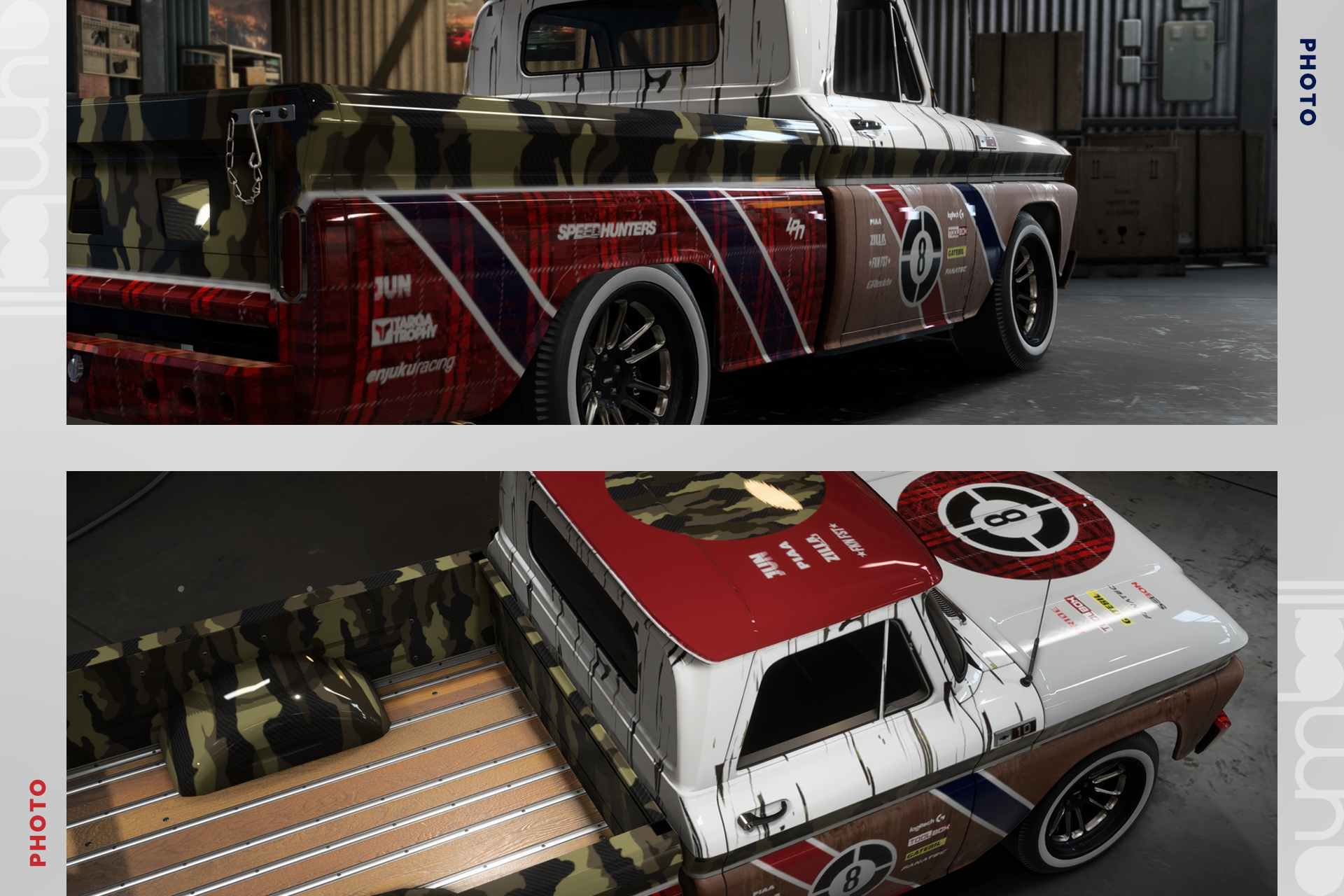 Zmieniam tu nurt na coś, czym jeździłoby się po amerykańskich miasteczkach rodem z Dzikiego Zachodu, route 66 i innych podobnych drogach niczym monte carlo w piosence "desperado" Rihanny. Stuningowanie tego auta było jednak dużym wyzwaniem - raz, że na pace jest drewno i stąd efekty rdzy dla "odbicia" tej paki kolorystycznie, dwa, że to pickup, czyli dwubryłówka, gdzie warstwy przechodzą w specyficzny sposób i wypełnić trzeba też szpary między kabiną, a paką. Klimatem to połączenie rocka i popu, w cichym i jednocześnie militarnym rytmie.