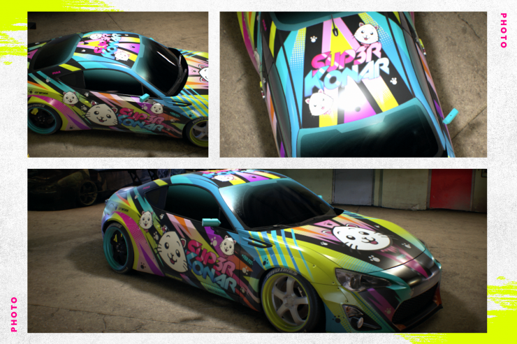 Super konar zapłonął, ale na krótko. Motyw wygląda jakby był inspirowany gotowymi wrapami dla specjalnie przygotowanych tunerów do CSR2. Ale na 7 zasługuje