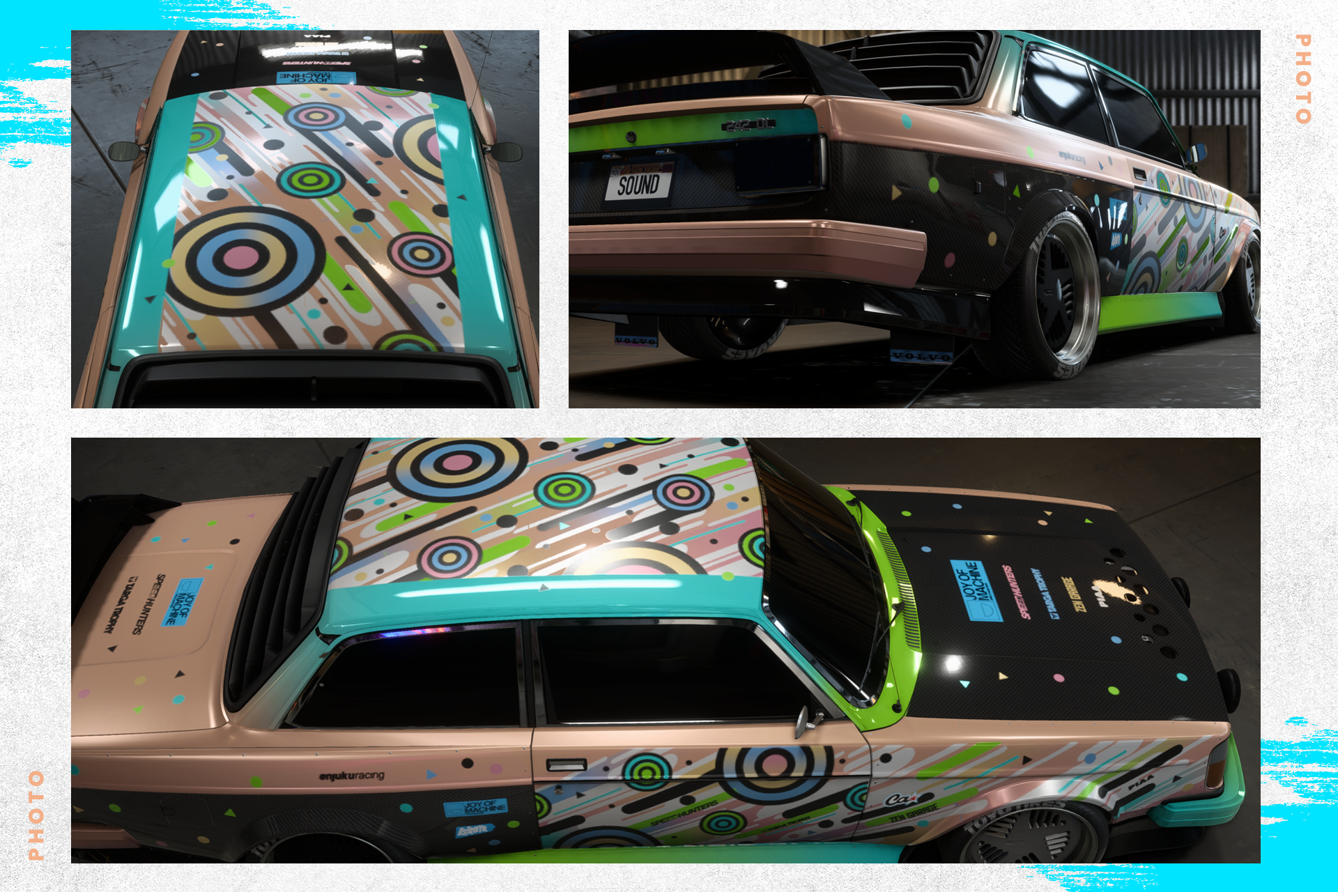 Ciekawe auto, podoba mi się wymieszanie dość nowoczesnego motywu ze starym autem. Podoba mi się też jak autko siedzi na glebie. No i różnokolorowe felgi <3