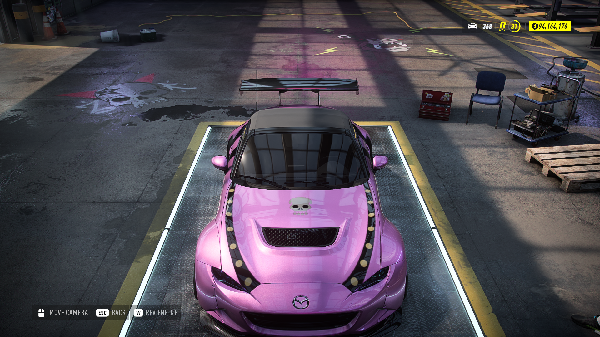 Spojrzałem na Twoją inspirację i... kurczę, to można było zrobić z dużo większym zagęszczeniem i po prostu dużo lepiej. Myślałem najpierw, że to inspiracja jakimś autem irl, bo one na eventach mają zwykle tak proste malowania i miałem napisać, że na grę przekłada się to trochę inaczej. Ale przy tej inspiracji, to powinno się przełożyć na mocniej zagęszczone malowanie, z fakturami pod dodatkowymi pasami, sponsorami oraz płynnym przechodzeniem motywów z boku na maskę - i vice versa. Dałeś np. jedną małą czachę na masce, i to byłoby okej, gdyby jej większa kopia znalazła się na boku. Tak samo - pasy z kołami na masce, których nie ma nigdzie indziej i motyw z boku, który można było łatwo powtórzyć na zderzakach. Po prostu trzeba przysiąść nad tym projektem, bo też masz do dyspozycji 300 warstw, a nie zużyłeś chyba nawet 50. Jest duży potencjał, i chyba tylko dlatego daję 6 + też trochę na zachętę, bo póki co to livery jest na max4.