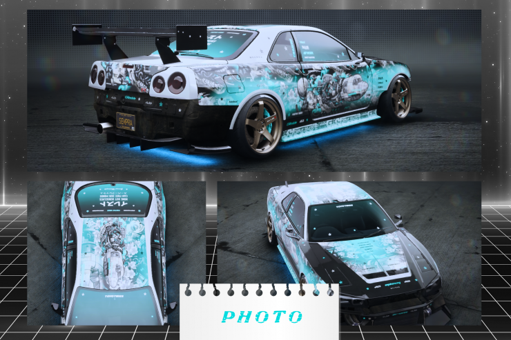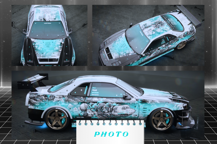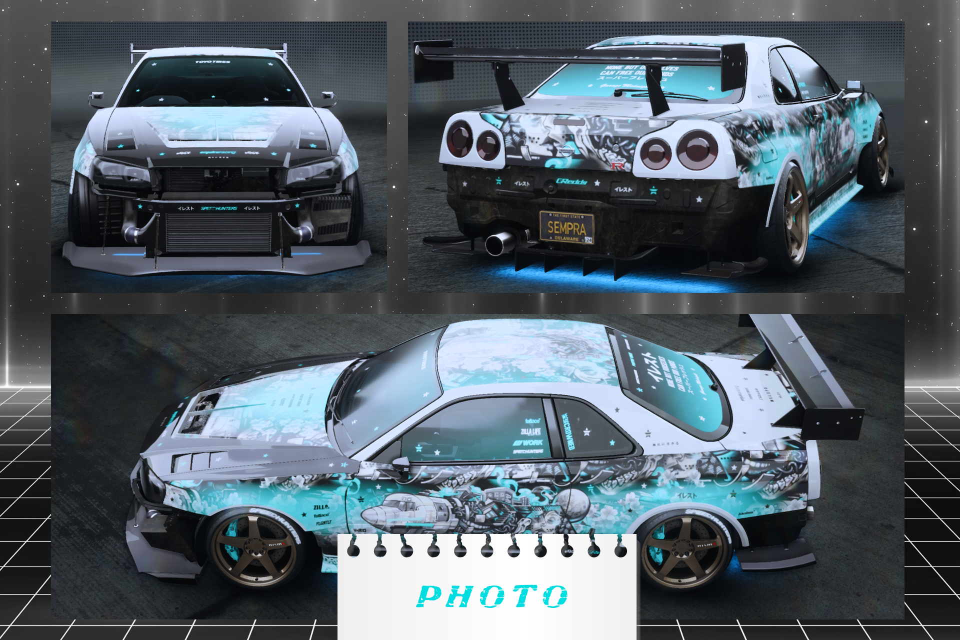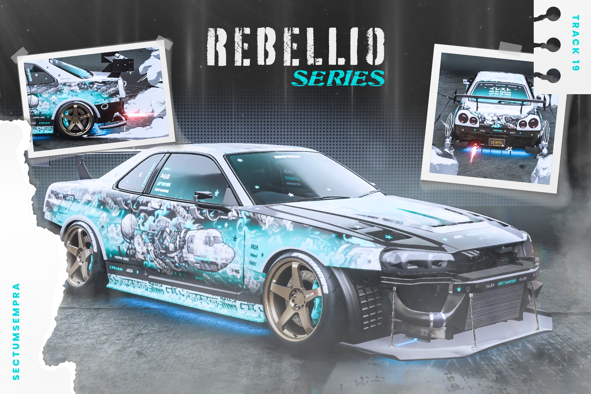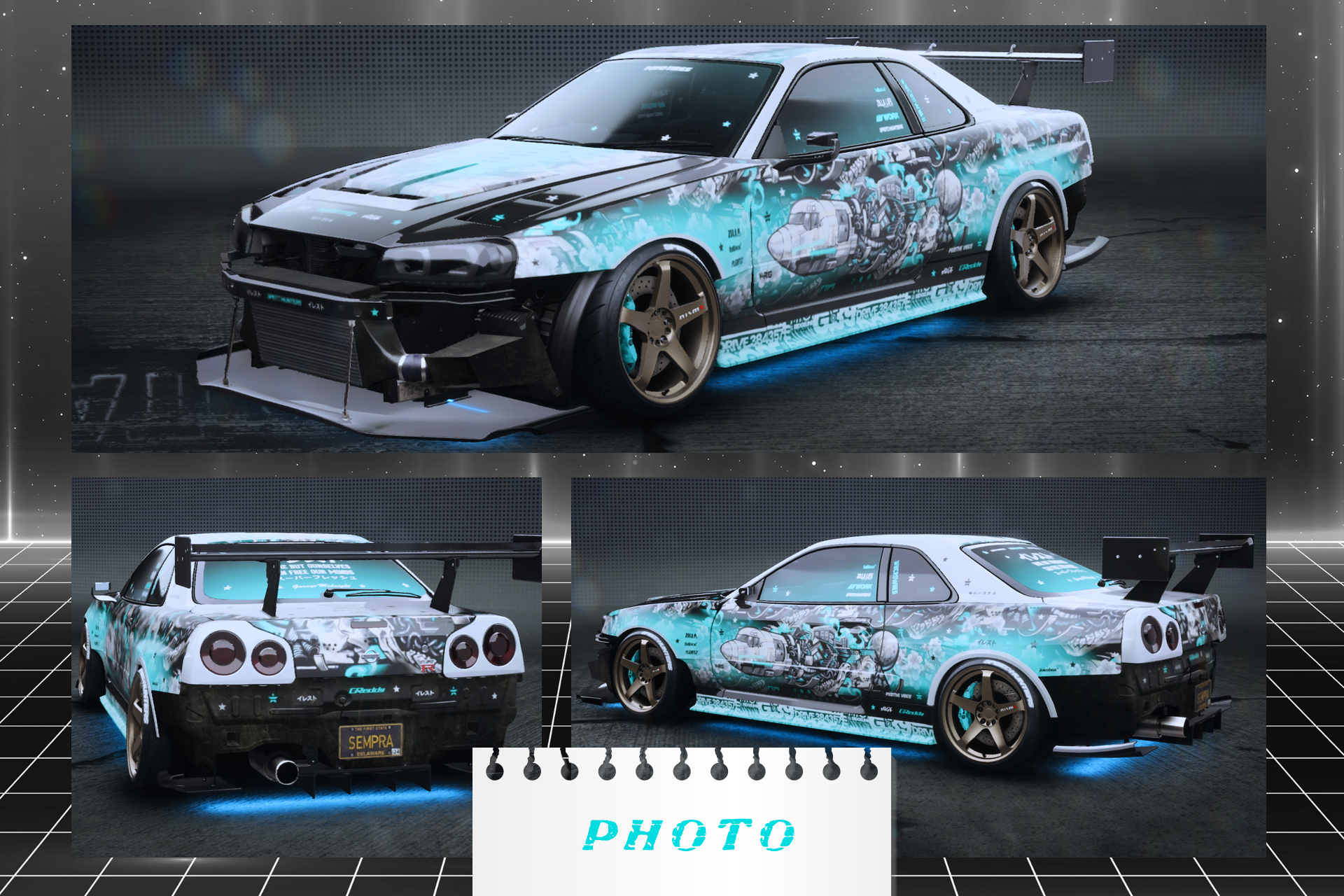 Podoba mi się agresywny tuning nadwozia, układ sponsorów, ale wrap nie porywa aż tak, kolorystyka mętna dość, niebieski wygląda na dowalony na koniec. Główny motyw wydaje sie ciekawy ale ginie w tym natłoku innych mniej ciekawych rzeczy takich jak pozdejmowane zderzaki, oklejone szyby czy niebieskie łuny. Całośc efektu jest, ok ale nic ponadto, myslę, że może byc to jeden ze słabszych spośród delirium czy co to tam jest tym razem