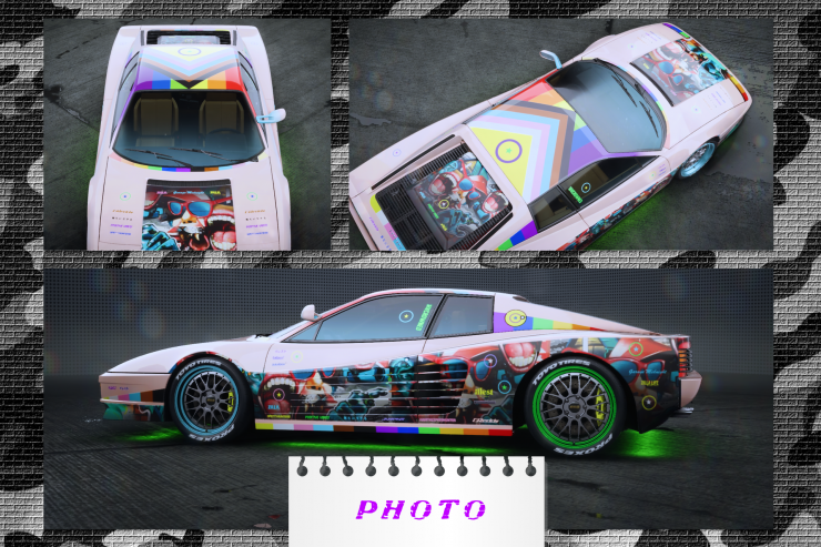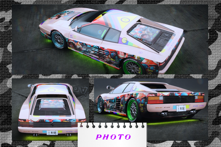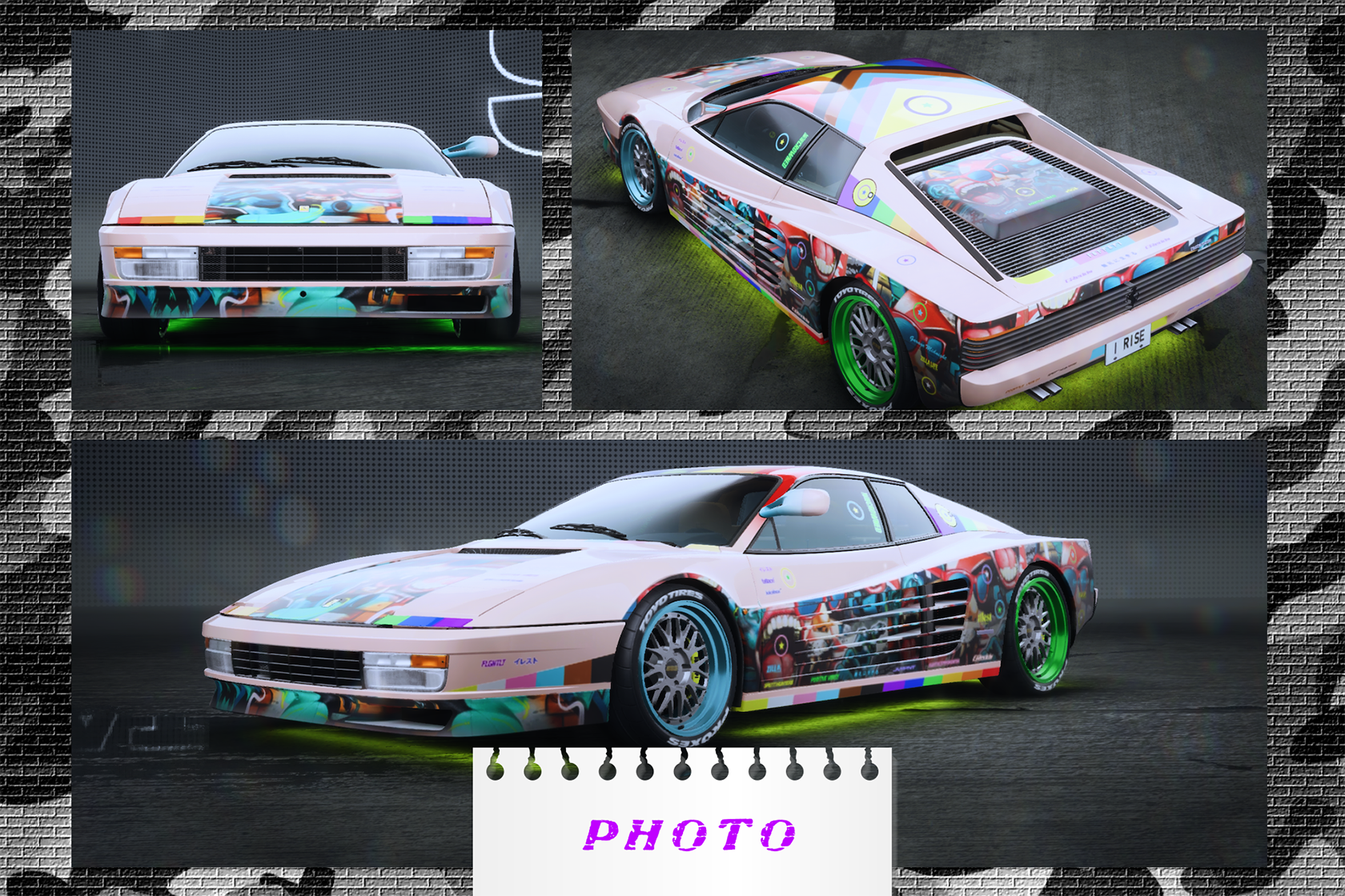 Trudno trochę pogodzić się z niecodziennym widokiem tak radykalnie oklejonej Testarossy, ale warto się od tego uwolnić i dostrzec jak luźno i z jajem wykonany jest Twój projekt. Do całości nie pasuje mi ten neon jednak.