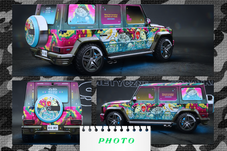 Dla mnie jest to szpetne. Sam vinylwork ma swoje momenty, ale pełno jest tu sprzeczności, w których ja urody nie dostrzegam. Nie działa na korzyść oklejenie tak akurat tej skrzyni, tutaj moje żarty o plandekach na żuka naprawdę znajdują ucieleśnienie.
