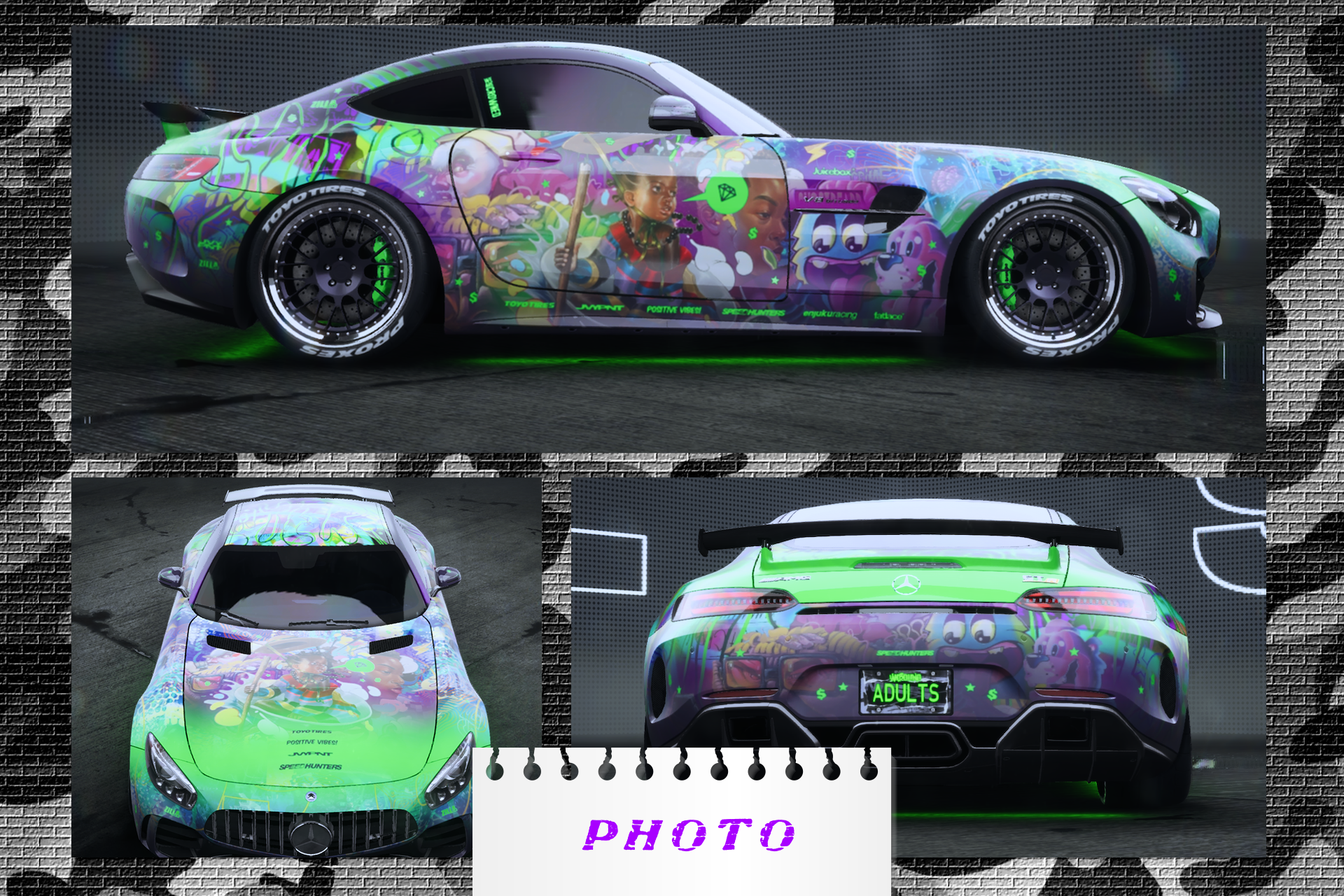 Wyrzyg mojego wewnętrznego dziecka. Jak graliście w HP to "opposite of adults" znacie i wiecie, o co chodzi. Bardzo intencjonalnie chciałem, by to auto wyglądało na zabazgrane przez dziecko. To zderzenie wewnętrznego dziecka - które już ledwo, ale nadal utrzymuję przy życiu - ze światem "dorosłych" i jego demonami. Tell mommy I'm sorry, this life is a party, I'm never growing up. I liczę, że tak będzie, bo żeby w tej rzeczywistości życie miało jakikolwiek smak, trzeba być trochę dzieckiem.