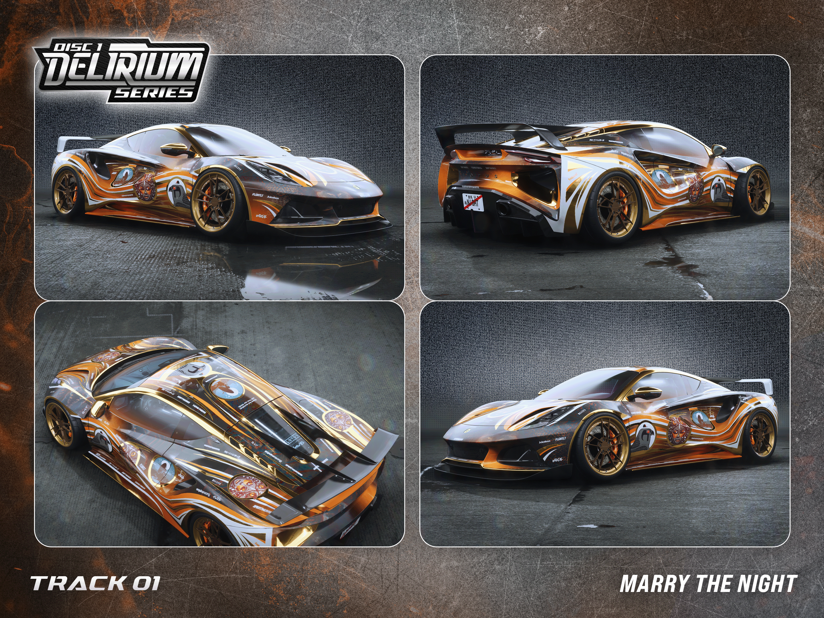 Geneza: prace nad Delirium zacząłem zaraz po Rebellio (pierwsza połowa 2023) - powstało 12 prac, które poszły w kąt (wyglądały jak gorsza kopia poprzedniej serii). W międzyczasie edytor Unbound dostał 1000 warstw i maskowanie, więc było wiadomo, że już tak tego nie opublikuję. Wróciłem do tematu po 1.5 roku, początkowo z zamysłem remasteringu tych prac pod 1000 naklejek, ale w tym, co finalnie widzicie, tylko prace 1, 2, 3, 6 i 7 noszą pierwotny koncept, a tylko GT2 RS jest faktycznie remasterem. Resztę wywaliłem do kosza. W miarę postępu prac projektów i pomysłów przybywało, by skończyć na double-serii i liczbie 24. Prace skończyłem w marcu, odstawiłem projekt na pół roku i od miesiąca działam z visualami do prac w miarę wolnego czasu.