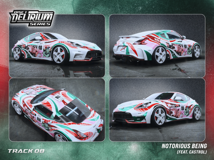 Core pracy to rozebranie na części i możliwe zagęszczenie dość prostych malowań Castrola. Połamanie i dekonstrukcja form malowań i zrobienie tego w "niesławny", niepoprawny sposób. Cukierkowy róż jest po to, by odbić użyte wstawki graficznych postaci, ale nie widzę już tego livery bez nich. Felgi a'la rajdowe, ale zetknięte z trochę wyścigowym, trochę tunerskim, trochę japońskim, zadziornym klimatem. I choć visual wydaje się sporą odklejką od projektu to myślę, że idealnie go dopełnia - czuję sporo niepoprawności w tych kształtach, ich prowadzeniu i łamaniu i zestawieniu z białym karbonem (który jest hot).