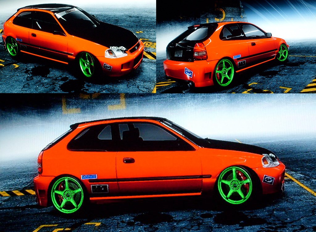 Przeróbka poprzedniej Hondy a la JDM. Auto zrobiłem czerwone a na fotce wygląda na pomarańczowe. Nie wiem dlaczego tak się stało.