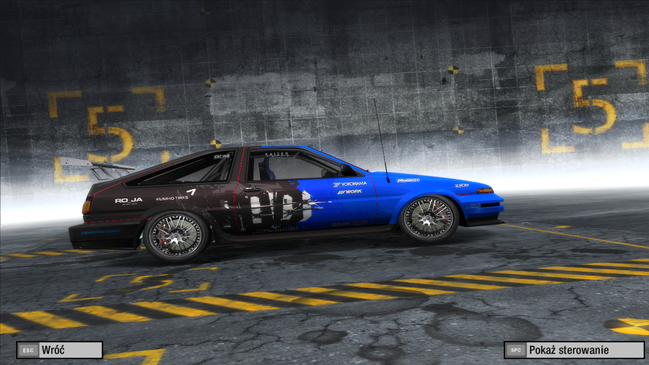 Spoiler w AE86 jest zbędny, mogłeś ewentualnie dać ten karbonowy, bo ten mi tu nie pasuje. Ładne felgi, naklejki nawet dobre, ale sponsoring troche kuleje. 4