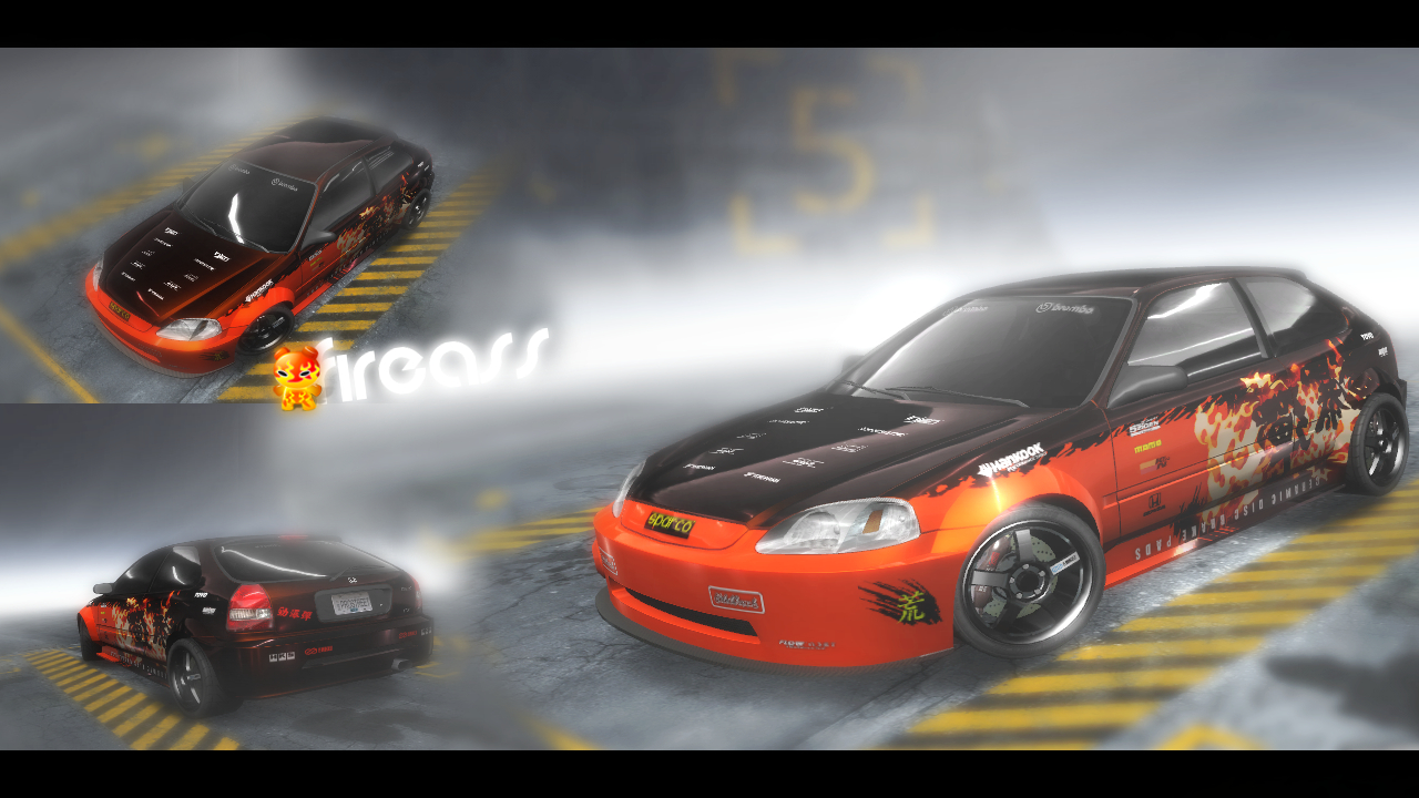 Ten motyw zupełnie nie pasuje do tego auta. A poza tym nie podobają mi się felgi, body i sponsorzy na przednim zderzaku. A jak już o zponsorach - znowu masz dwóch producentów opon, trzech producentów felg (z czego tylko jeden sie zgadza z modelem założonych w aucie felg) i producenta hamulców innego niz marka hamulców, które są założone. No i obróbka strasznie ssie.